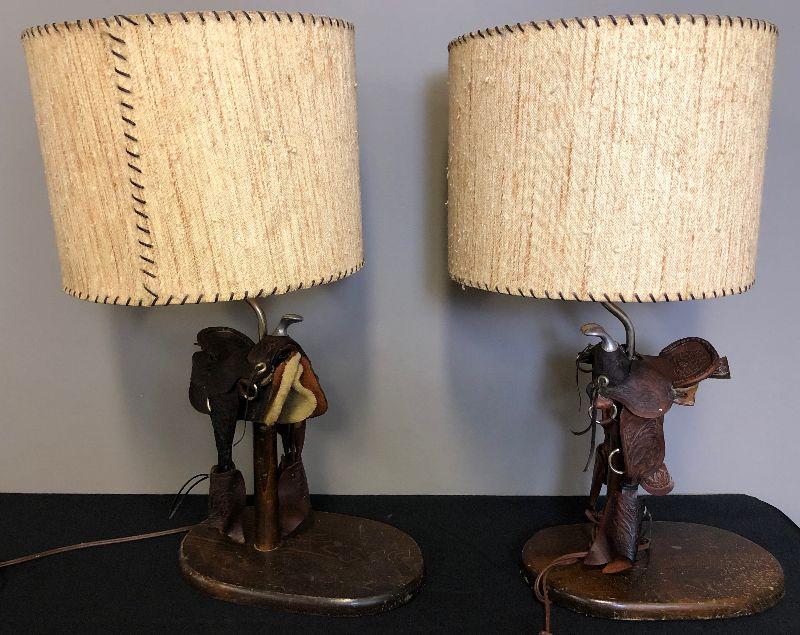 Lot # 73 Vintage Western Style Saddle Table Lamps