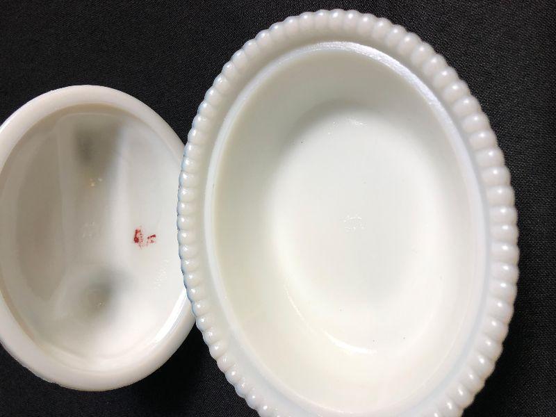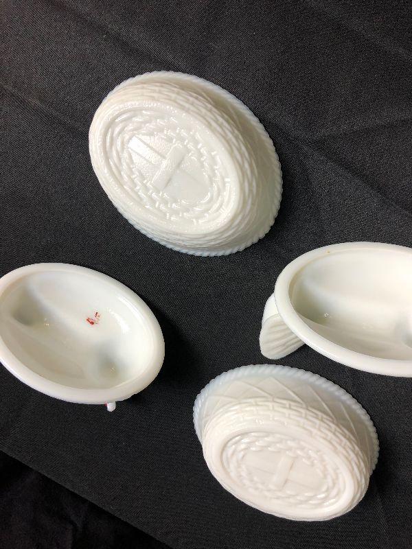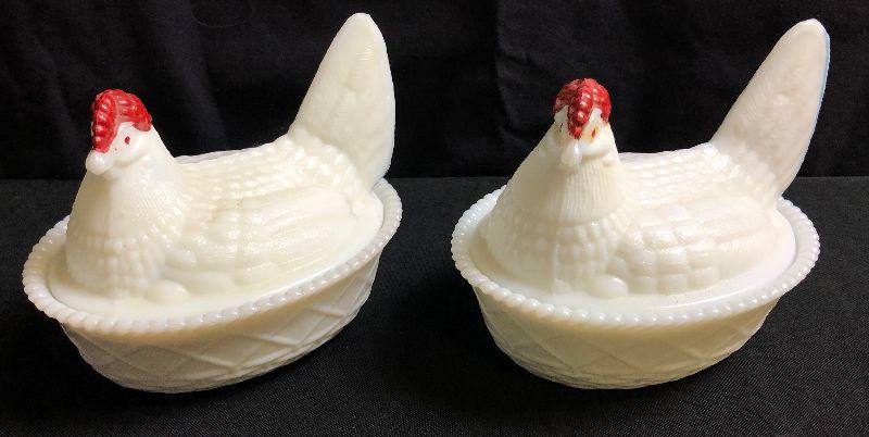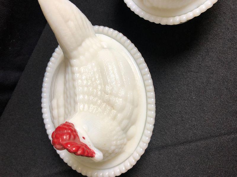 Lot 73 Westmorland Milk Glass 2 Medium hen in a basket Ver