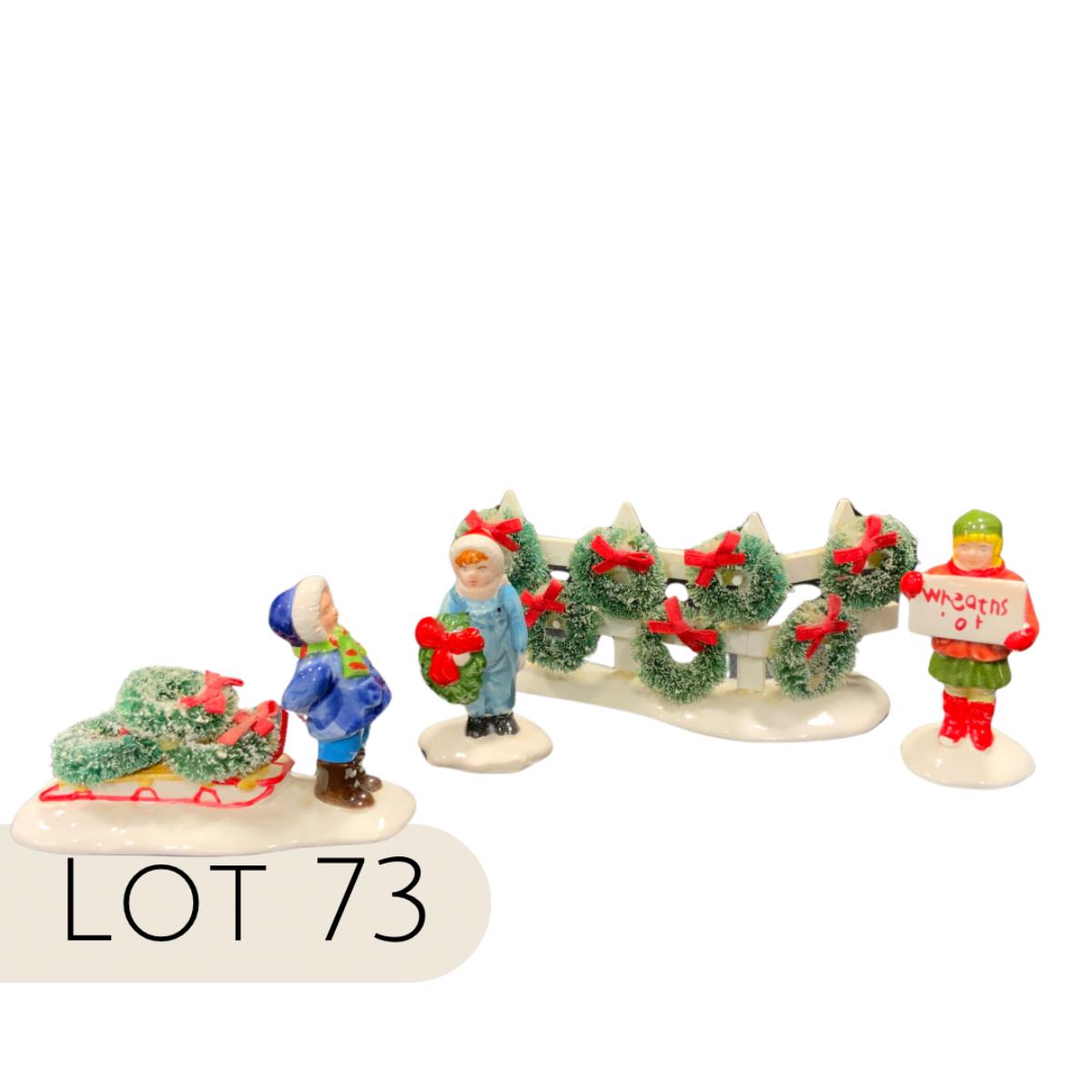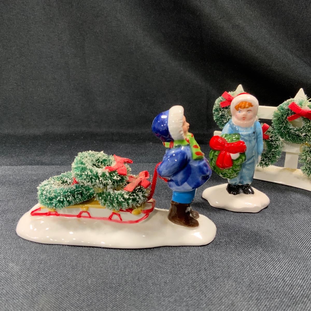 maybe one of my favorite little sets in the auction. Wreaths for Sale features three cute kiddos engaged in commerce. Please see photos for details and condition. ::: Shipping is available on this lot. If you require shipping you must let us know at the close of the auction. We will coordinate with you after the item has been won. Shipping fees will include insurance up to or exceeding the value of all items being mailed. If you have any questions regarding this lot please contact the auctioneer either via this website, by direct email or by phone. PICK UP TIMES and other important information can be found in the TERMS and DESCRIPTION of the auction. Please take a look for pertinent information. Thanks! Any condition statement is given as a courtesy to a client, is an opinion, and should not be treated as a statement of fact. Reference to condition written, oral or within a condition report shall not be regarded as a full account of condition and may not include all defects, alterations, or restorations. Absence of a condition report does not imply a lot is flawless or lacking imperfections or damage. Katherine’s Auction & Appraisal Service shall have no responsibility for any error or omission. Returns shall not be accepted on the basis of condition.