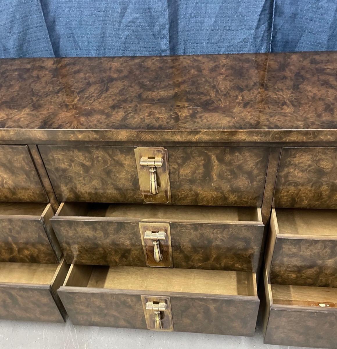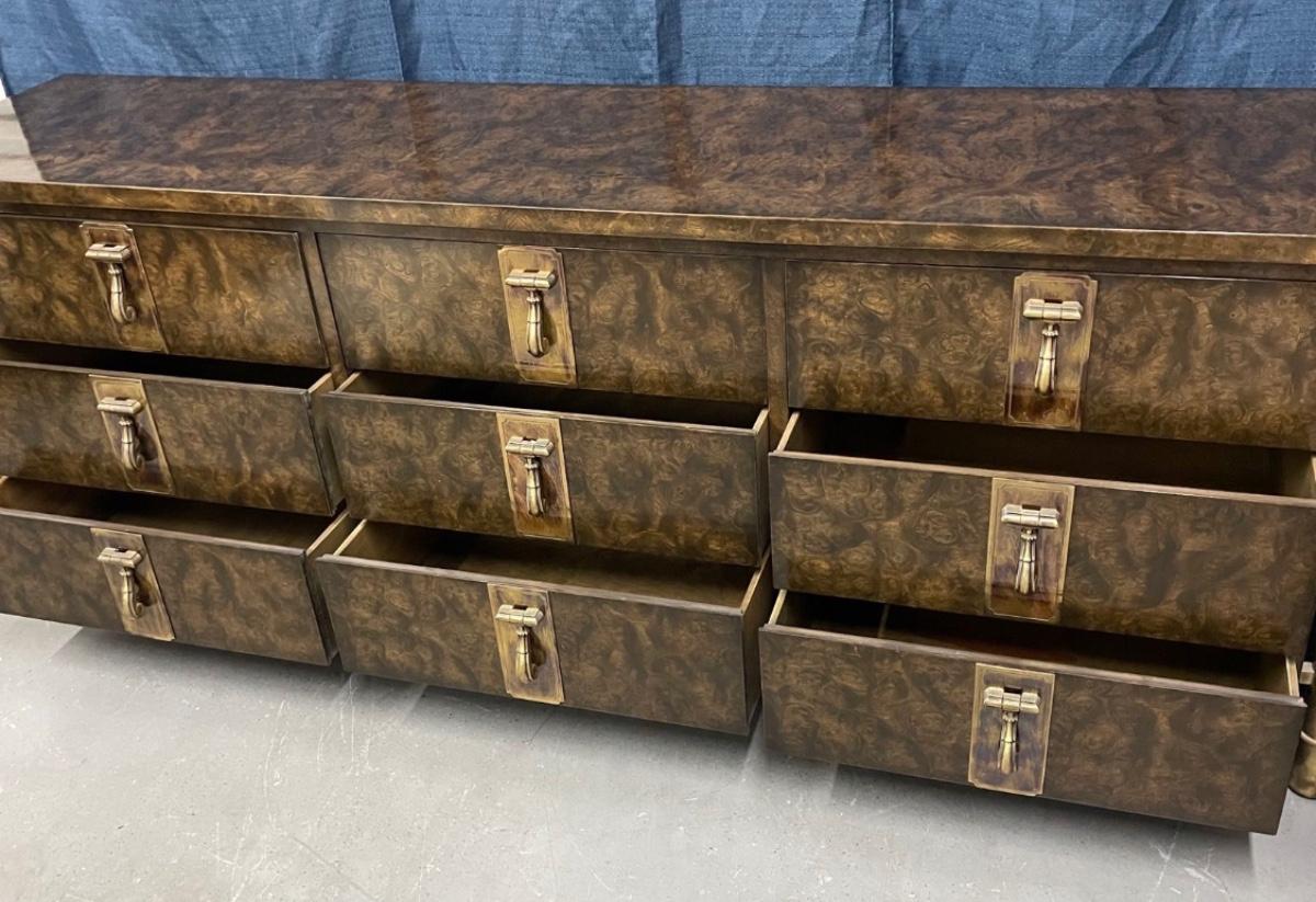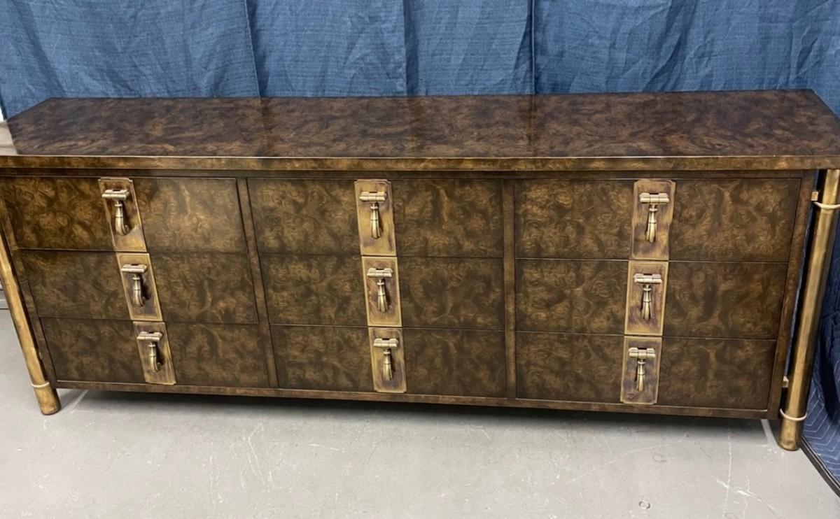 LOT#100. VINTAGE MASTERCRAFT NINE DRAWER DRESSER WITH BRASS HARDWARE