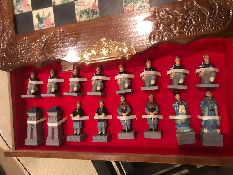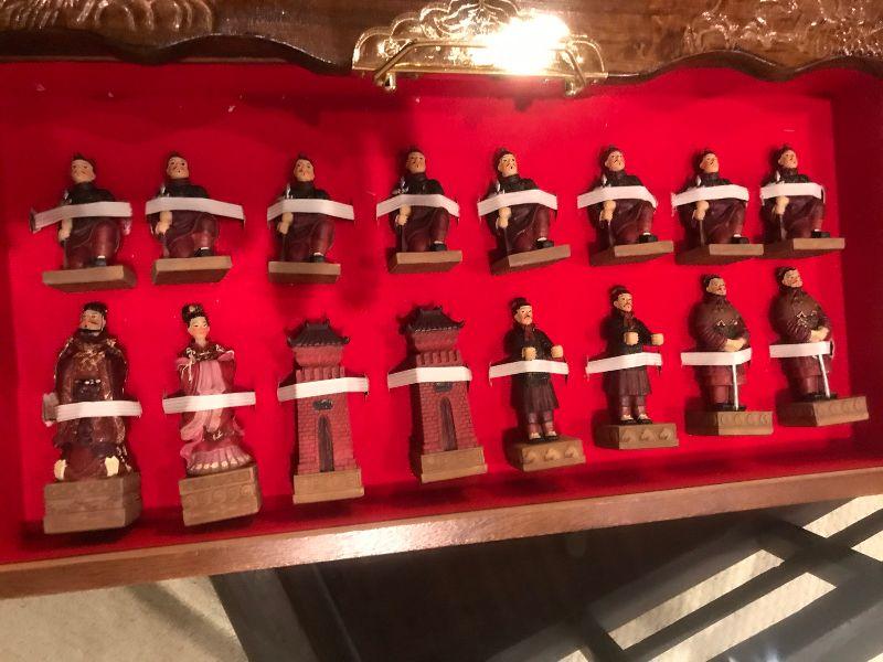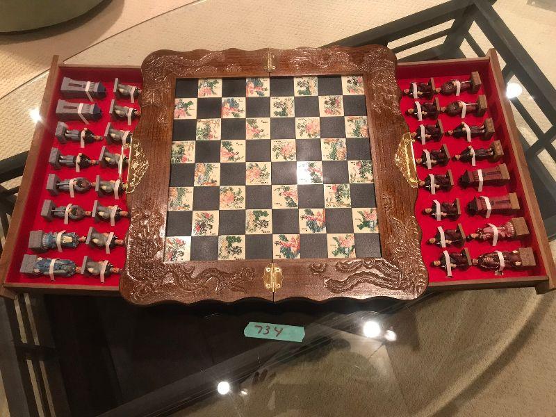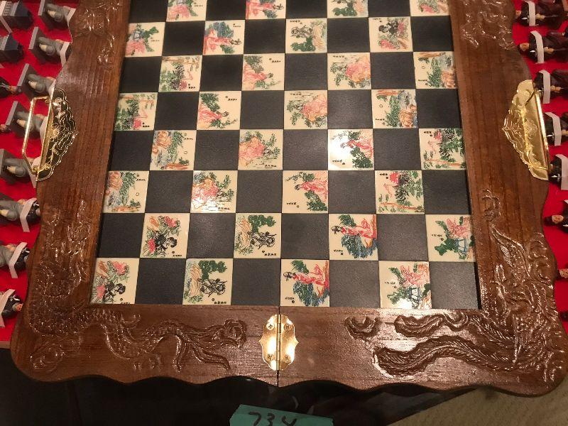Chess Set in Wood Case 19" square, older really neat piece.