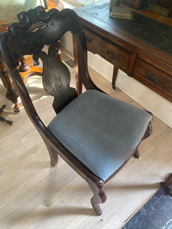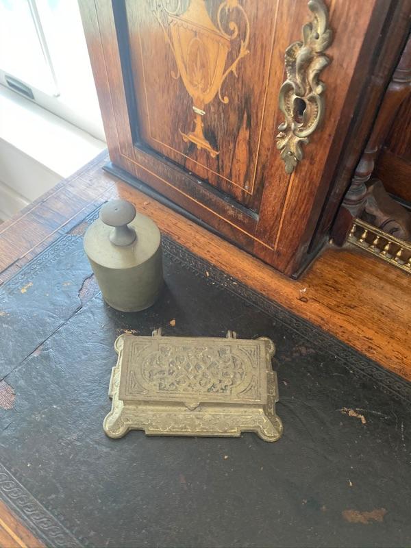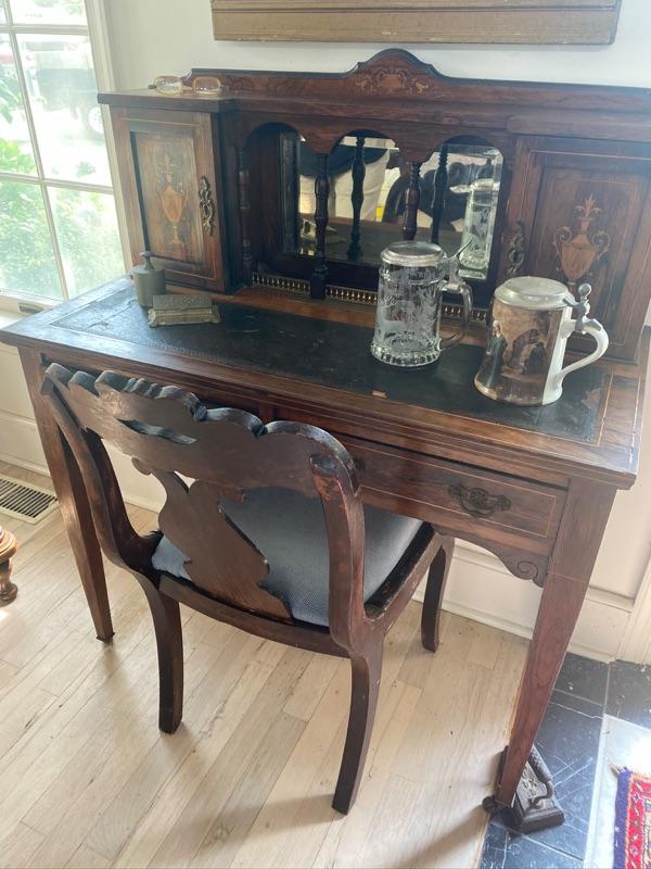 Lot # 735 Antique Inlaid Ladies Desk with chair and decor