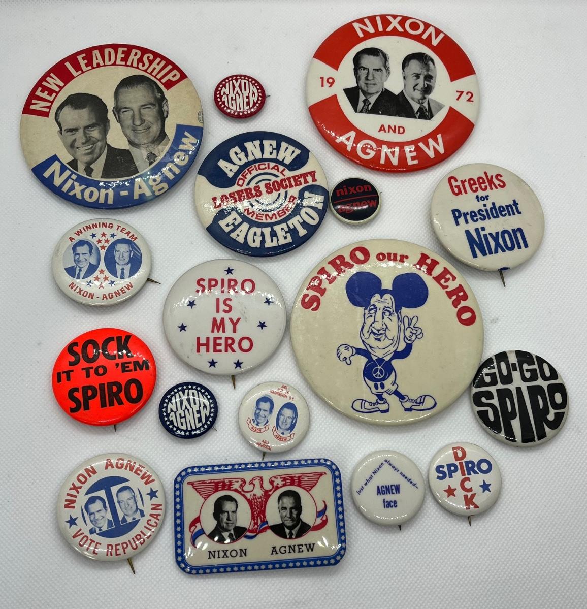 LOT 4: Spiro Agnew Vice President Richard Nixon Political Campaign Buttons, Pins