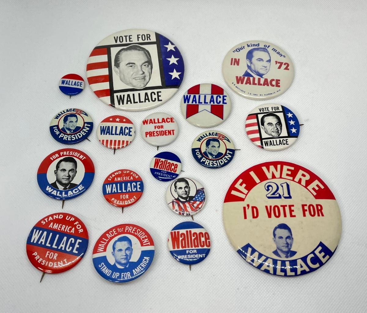 LOT 12: George Wallace Presidential Campaign Political Pins, Buttons
