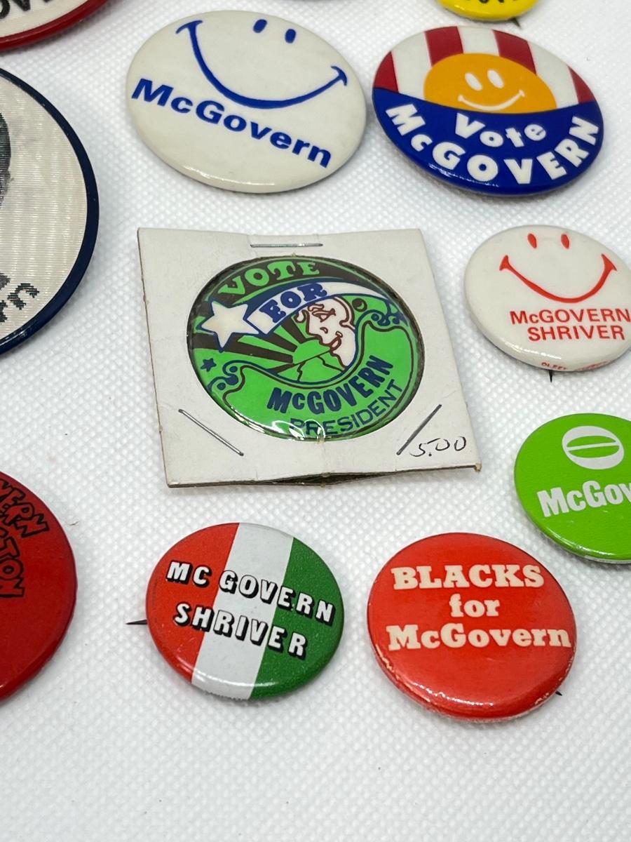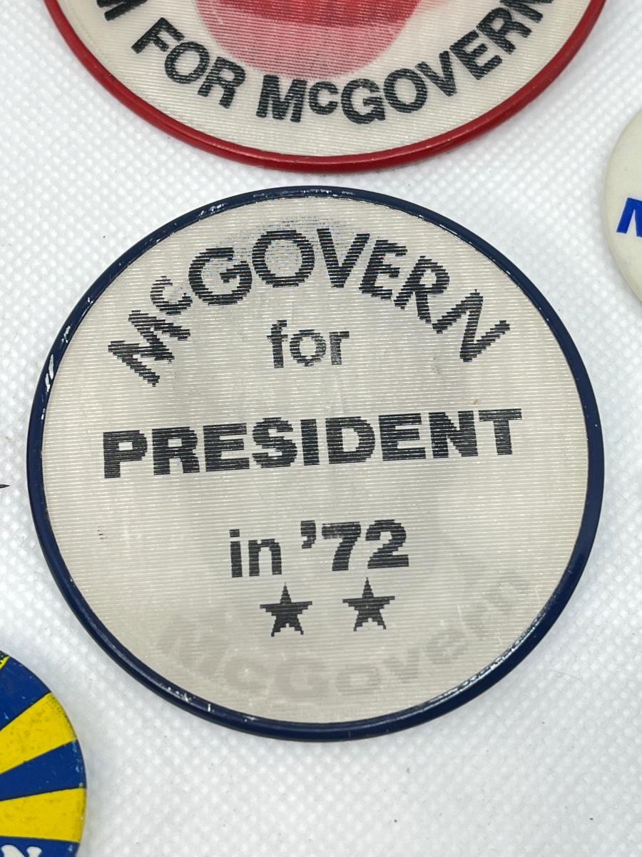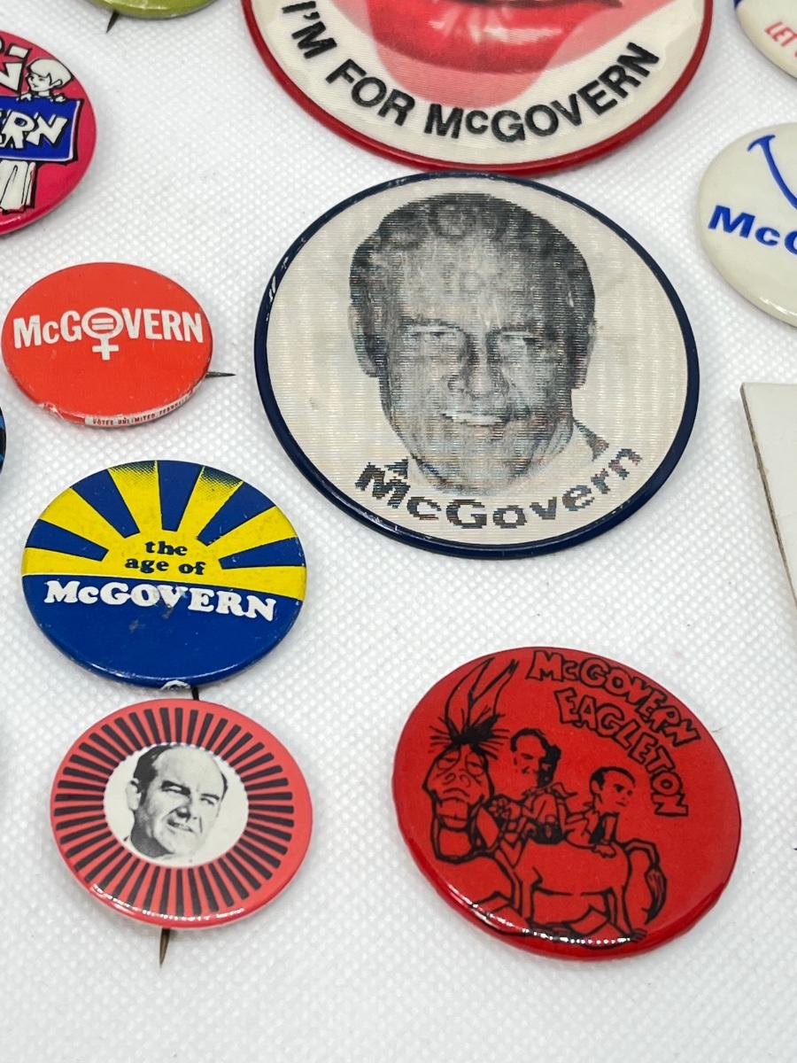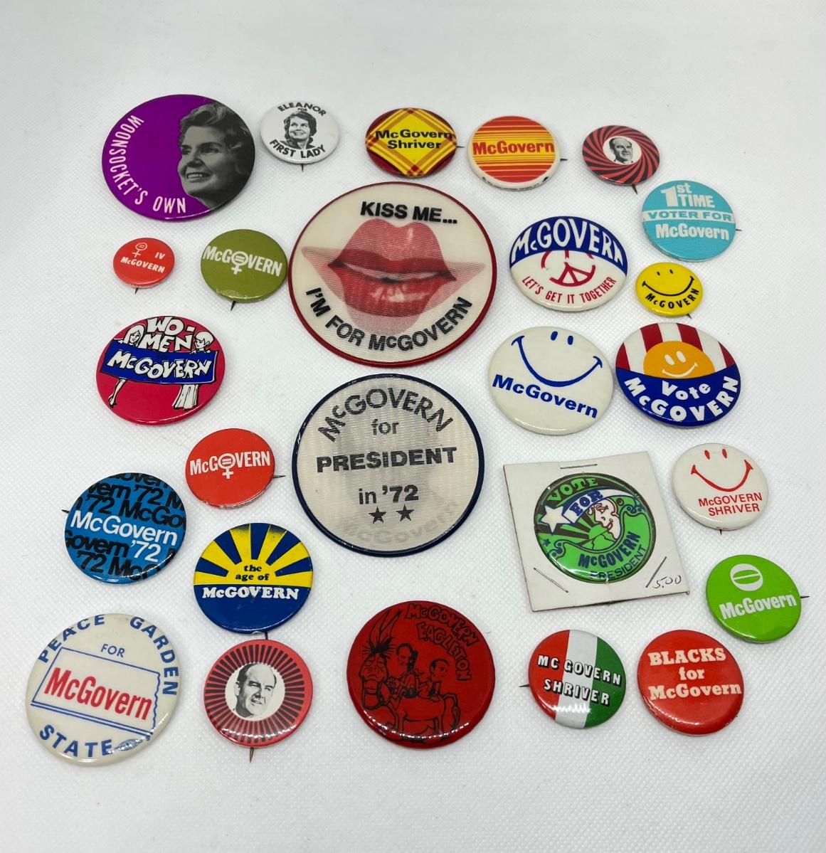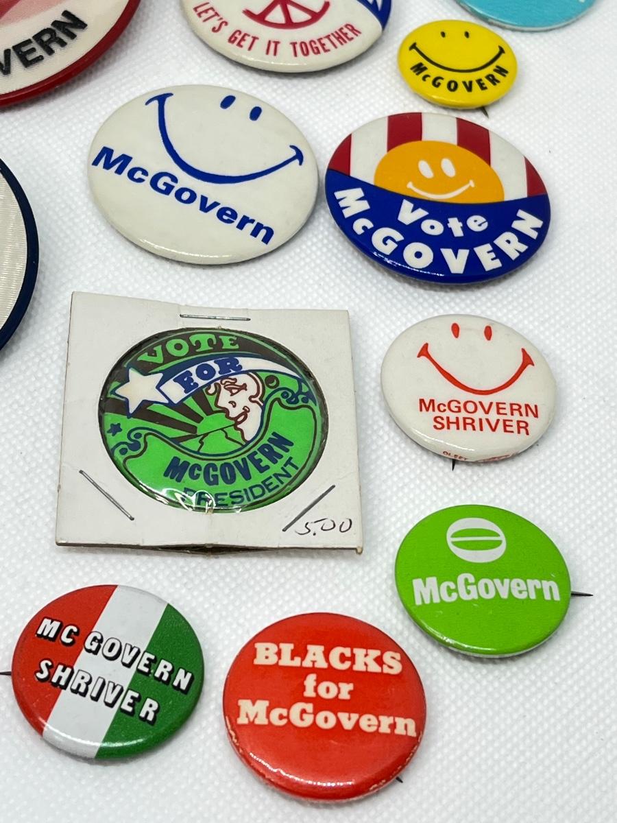 1972 George McGovern for President Political Pins. The pictures show condition, measurements if taken, and what is included in the lot. All items unless noted, are pre-owned and may or may not have been worn. Unless noted in the pictures or description, there are no boxes for the jewelry. Shipping will be offered at the actual shipping cost to your zip-code plus $4.00 per lot for packing and handling. We can do combined shipping. Items over $50.00 will have an added insurance charge, and will be signature required for delivery at the buyers expense. For a shipping quote, please email with zip code and items (lot) numbers. Treasure Me Estate Sales offers shipping as a courtesy and in doing so, reserves the right to choose the shipping supplies including whether not to send in an envelope or box to protect the integrity of the item. When the auction closes, and all items have sold, you will receive an invoice with all of your winning items. If you need shipping, and there is not a shipping charge on the invoice, please email for a quote and new invoice will be sent with shipping charges and pay at that time. Paying through PayPal helps so we can generate a label with tracking, but is not required. Thank you and please email with any questions.