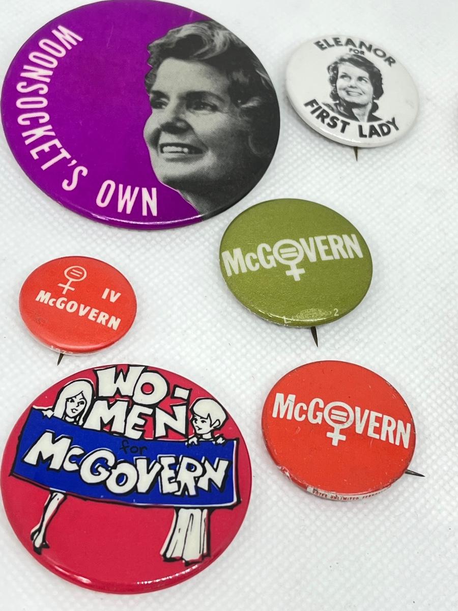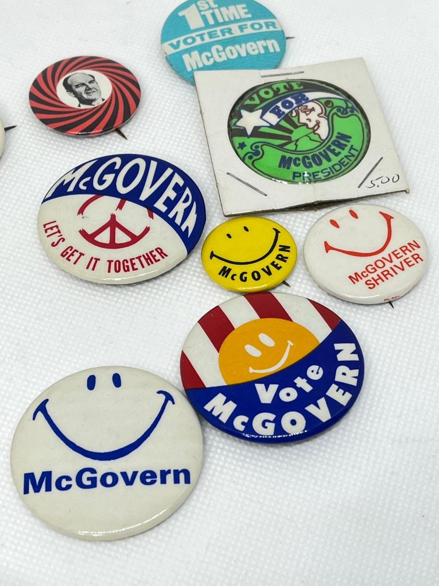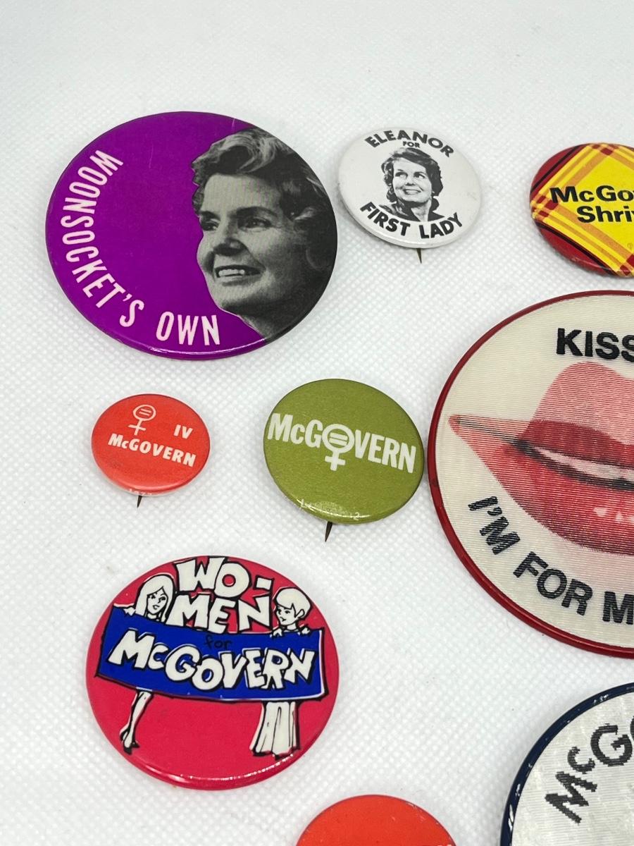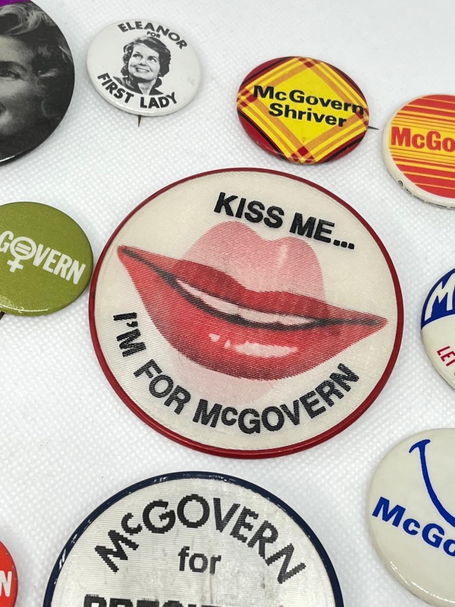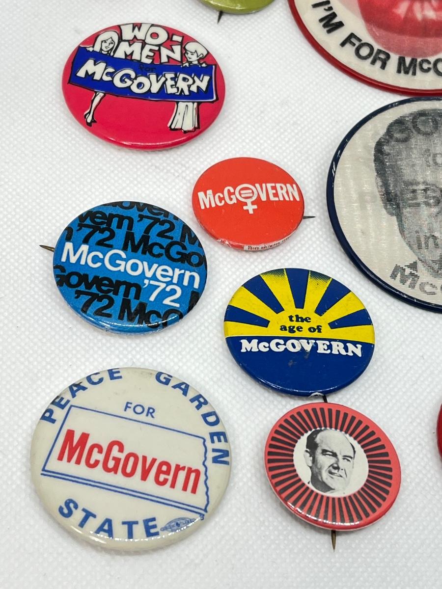 1972 George McGovern for President Political Pins. The pictures show condition, measurements if taken, and what is included in the lot. All items unless noted, are pre-owned and may or may not have been worn. Unless noted in the pictures or description, there are no boxes for the jewelry. Shipping will be offered at the actual shipping cost to your zip-code plus $4.00 per lot for packing and handling. We can do combined shipping. Items over $50.00 will have an added insurance charge, and will be signature required for delivery at the buyers expense. For a shipping quote, please email with zip code and items (lot) numbers. Treasure Me Estate Sales offers shipping as a courtesy and in doing so, reserves the right to choose the shipping supplies including whether not to send in an envelope or box to protect the integrity of the item. When the auction closes, and all items have sold, you will receive an invoice with all of your winning items. If you need shipping, and there is not a shipping charge on the invoice, please email for a quote and new invoice will be sent with shipping charges and pay at that time. Paying through PayPal helps so we can generate a label with tracking, but is not required. Thank you and please email with any questions.