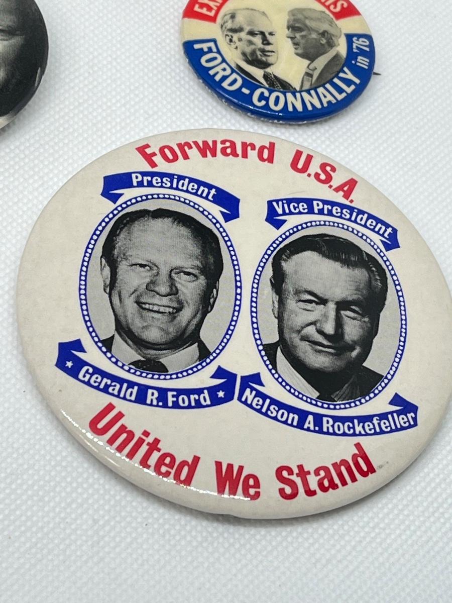 Gerald Ford 1976 Presidential Campaign Buttons. The pictures show condition, measurements if taken, and what is included in the lot. All items unless noted, are pre-owned and may or may not have been worn. Unless noted in the pictures or description, there are no boxes for the jewelry. Shipping will be offered at the actual shipping cost to your zip-code plus $4.00 per lot for packing and handling. We can do combined shipping. Items over $50.00 will have an added insurance charge, and will be signature required for delivery at the buyers expense. For a shipping quote, please email with zip code and items (lot) numbers. Treasure Me Estate Sales offers shipping as a courtesy and in doing so, reserves the right to choose the shipping supplies including whether not to send in an envelope or box to protect the integrity of the item. When the auction closes, and all items have sold, you will receive an invoice with all of your winning items. If you need shipping, and there is not a shipping charge on the invoice, please email for a quote and new invoice will be sent with shipping charges and pay at that time. Paying through PayPal helps so we can generate a label with tracking, but is not required. Thank you and please email with any questions.