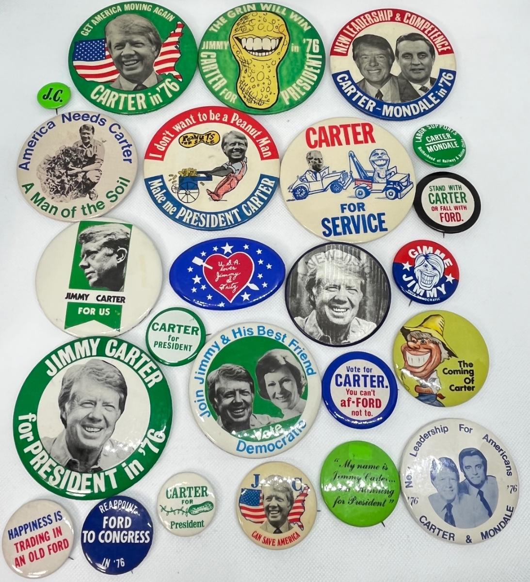 LOT 29: Jimmy Carter 1976 Presidential Campaign Political Pins, Buttons