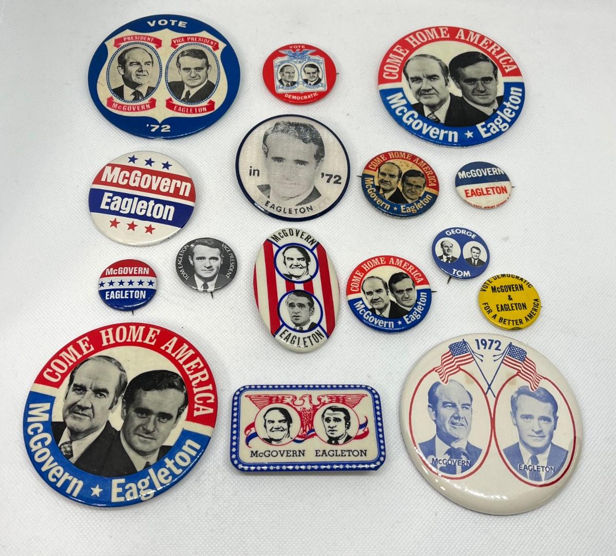 LOT 34: McGovern/Eagleton 1972 Political Campaign Buttons, Pins