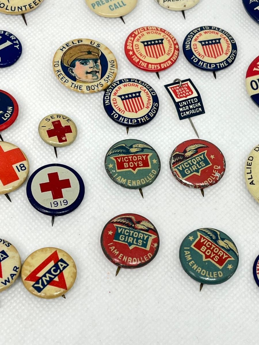 LOT 38: Antique World War I Era Pins & More - Victory Boys/Girls, Red Cross, YMCA and Others