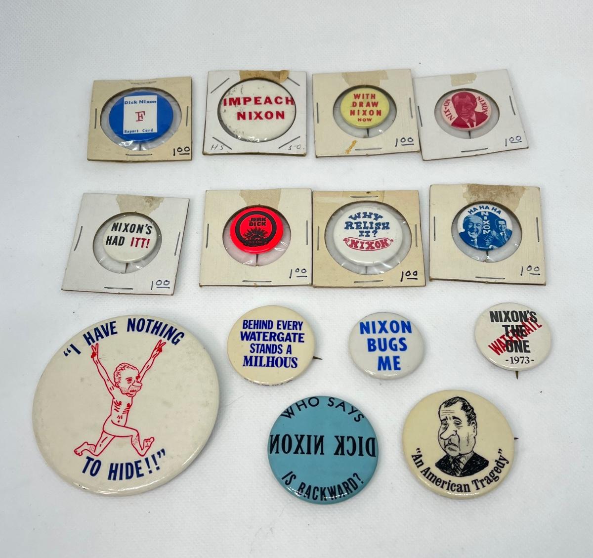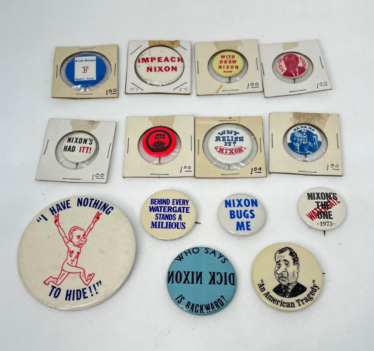 LOT 47: Anti-Nixon Political Buttons, Pins - Watergate & More