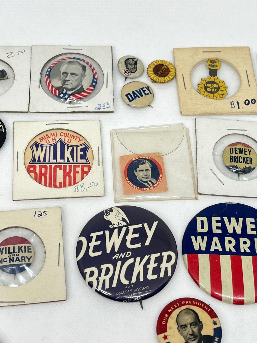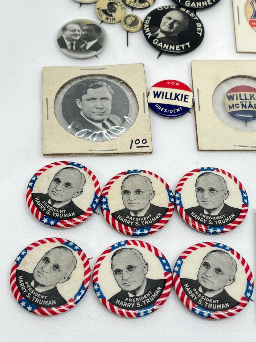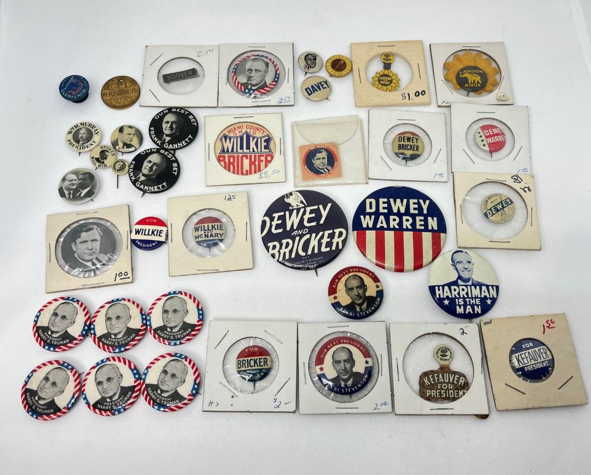 LOT 53: Antique/Vintage Political Pins, Buttons (1890s-1950s) Mostly Presidential Races