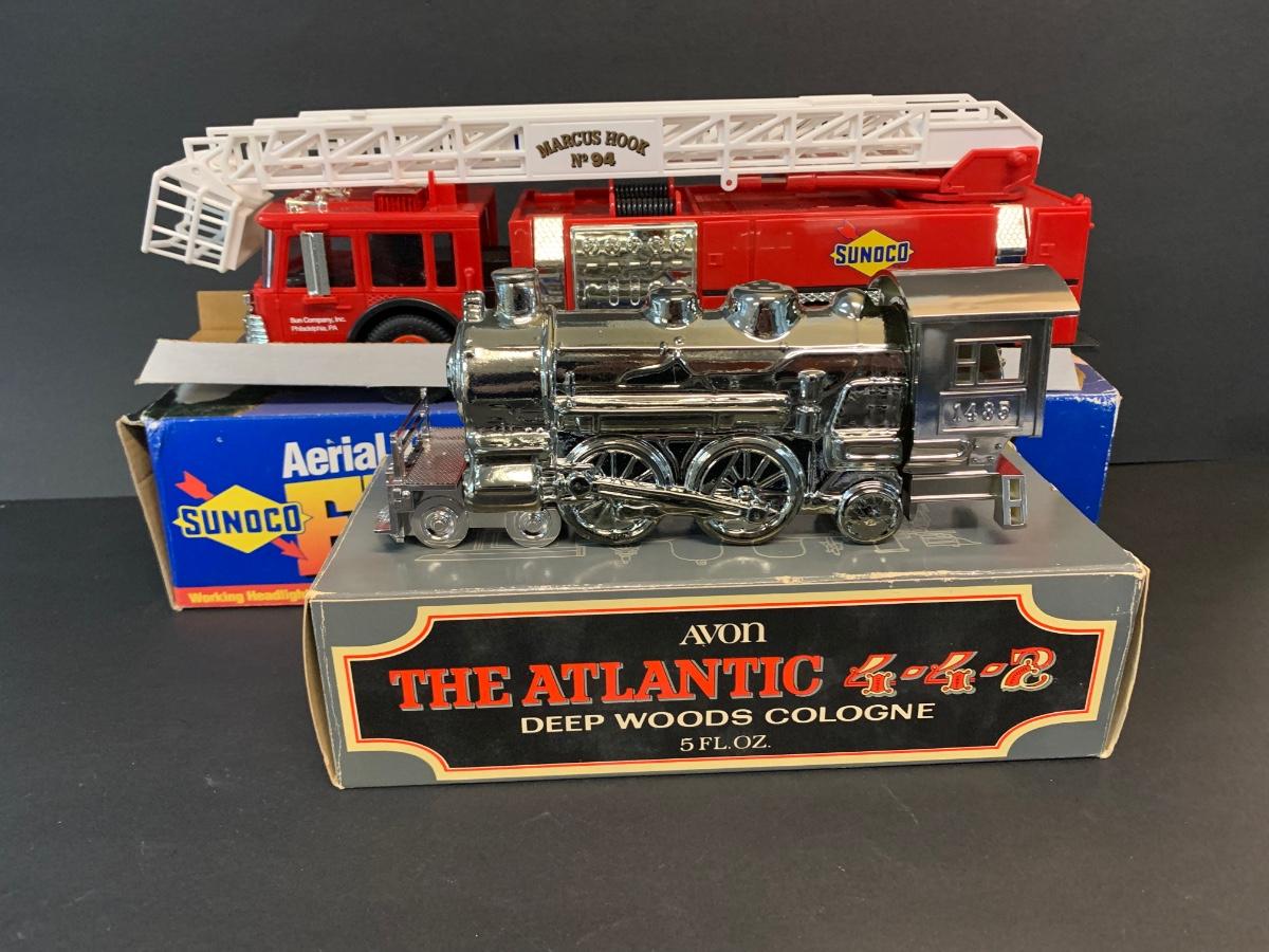 LOT R142: Sunoco Fire Truck 1995 & Avon Train Cologne w/Boxes