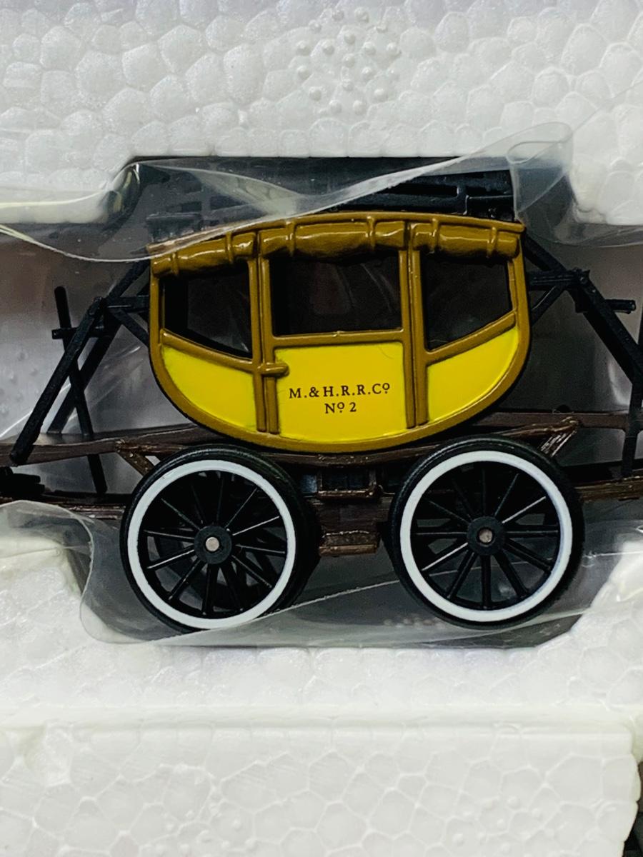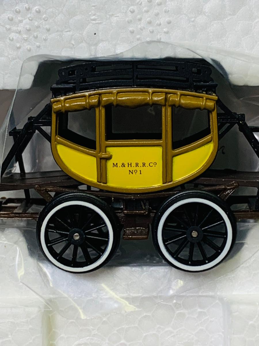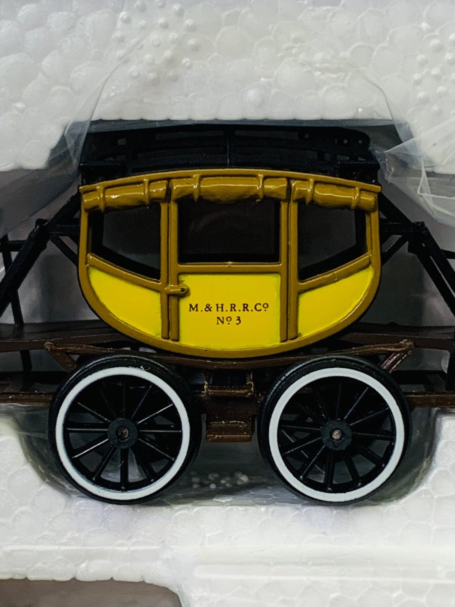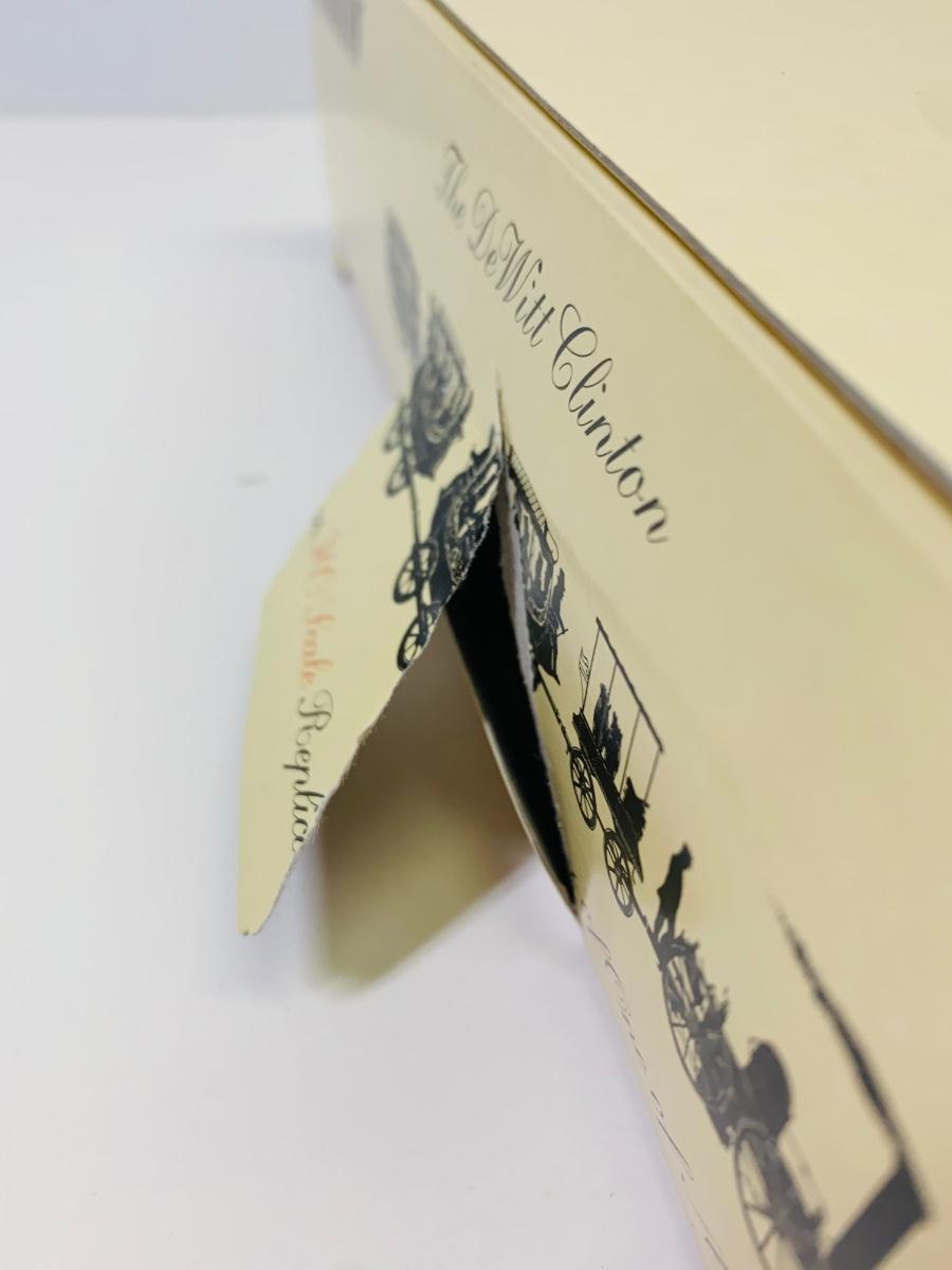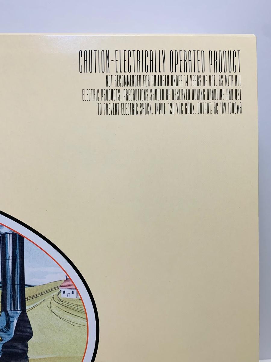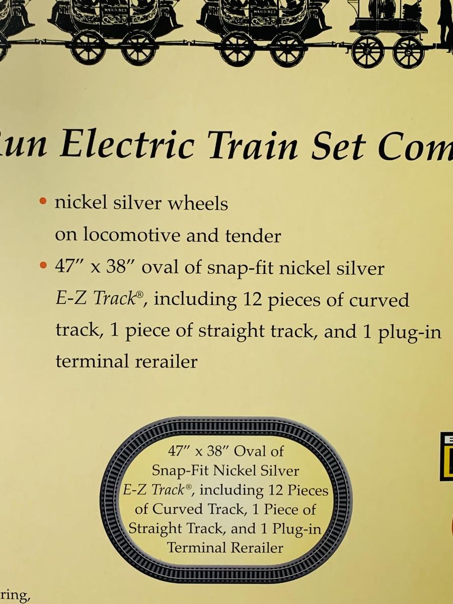 Reproduction of the train named for the Father of the Erie Canal.. The set includes engine, tender, and 3 cars plus track and transformer. This is a really unique train set. The box is the original box and has a tear on the end.
