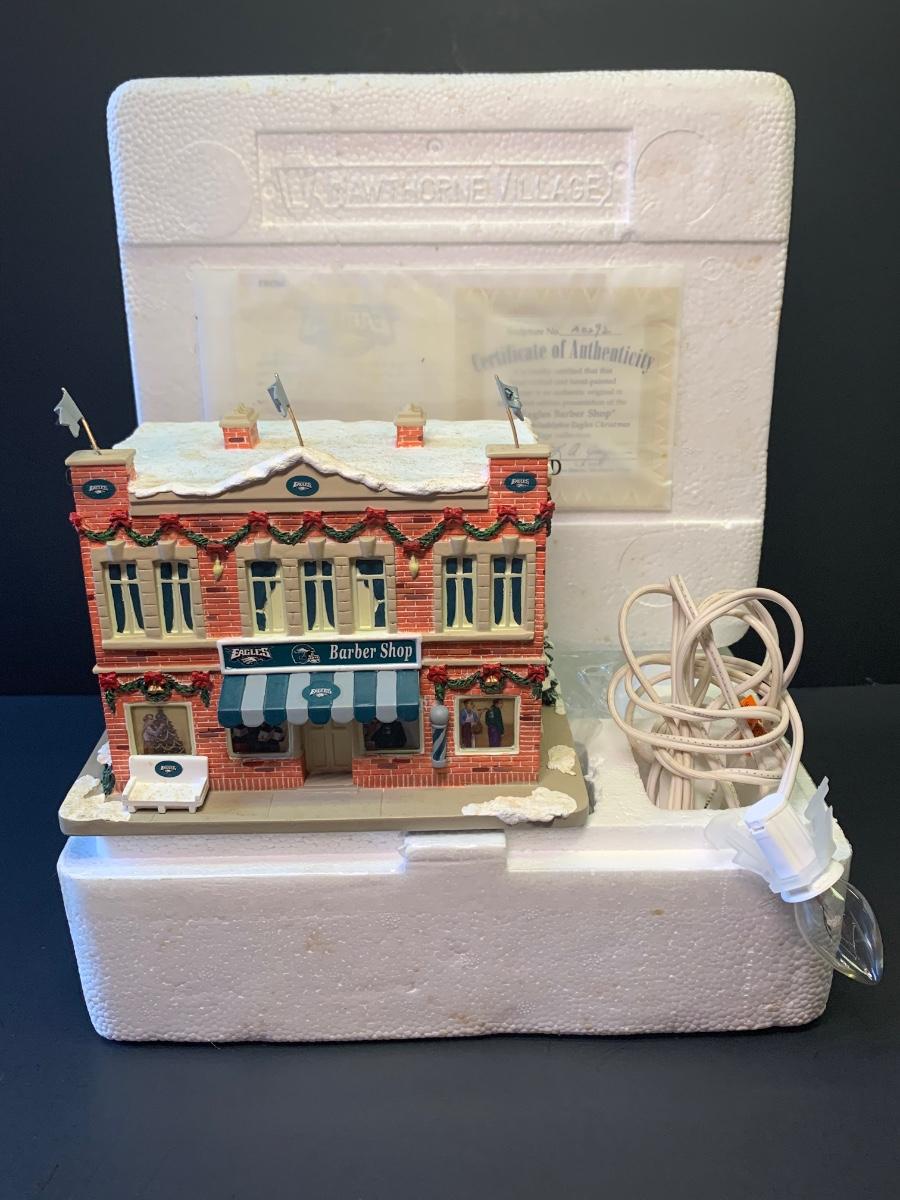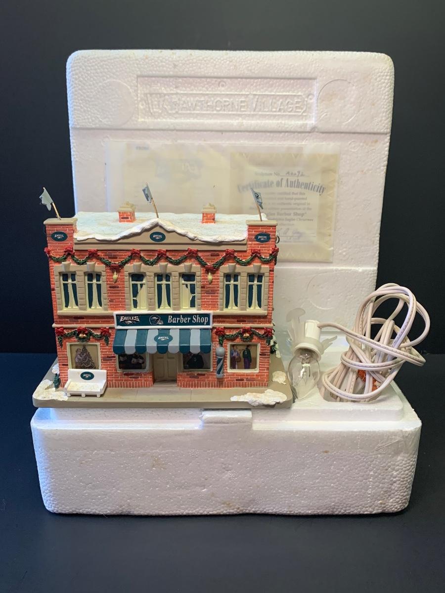 Authentic Philadelphia Eagles Hawthorne Christmas Village with the original Styrofoam/packing- no box, may or may not have the COA, if the packaging envelope was sealed it was not opened to verify the COA