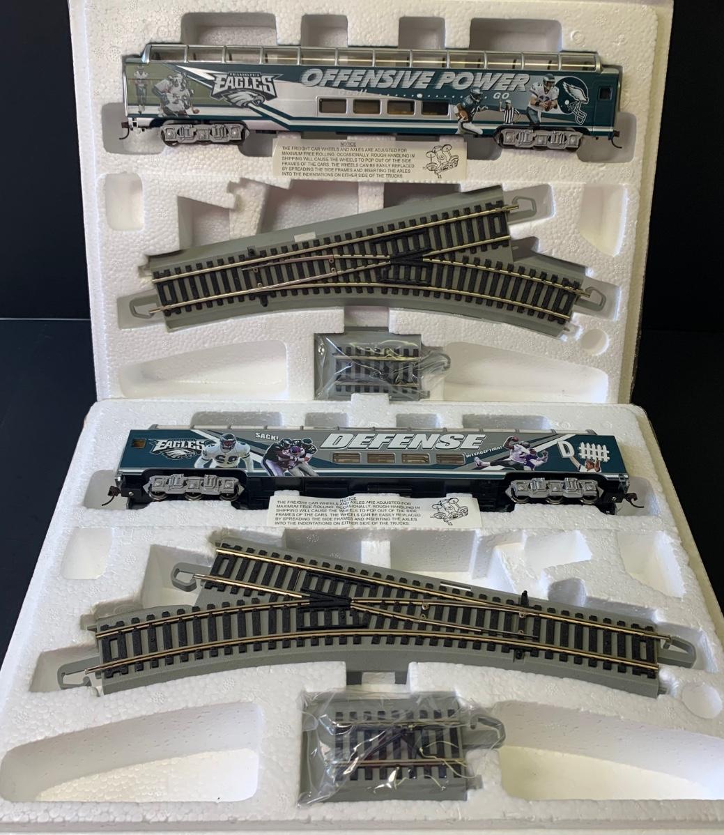 Lot  55R:Hawthorne Village Bachman E-Z Track H0 Philadelphia Eagles Offensive & Defense Dome Cars