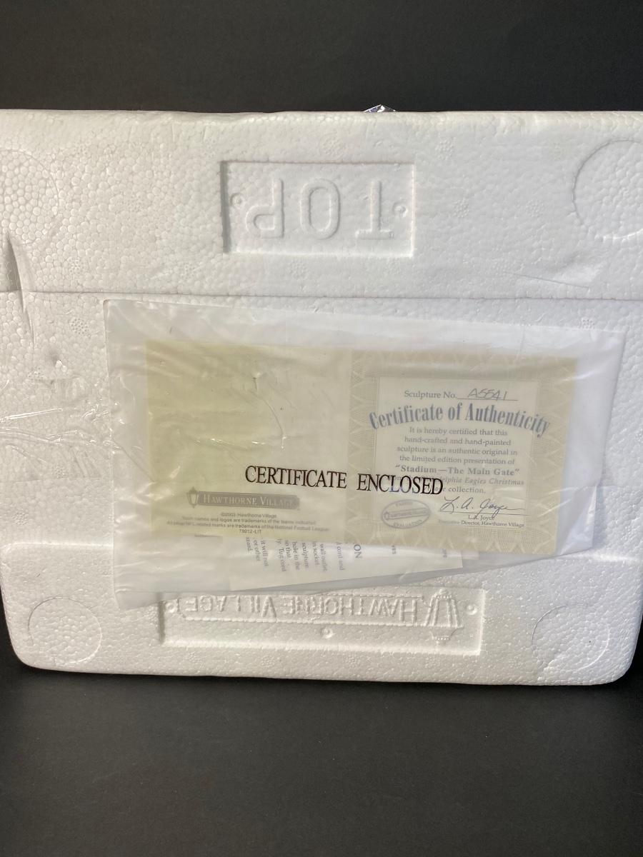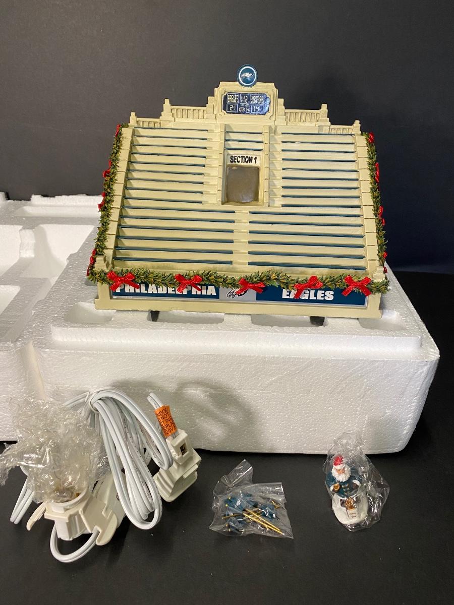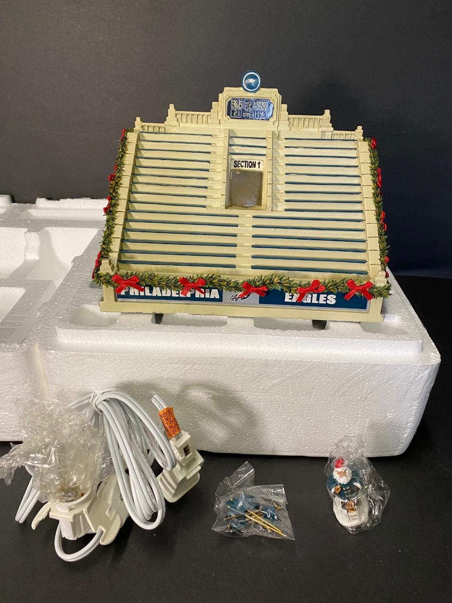 Authentic Philadelphia Eagles Hawthorne Christmas Village with the original Styrofoam/packing- no box, may or may not have the COA. Please see all pictures as they are the best representation of the items. Please see all pictures as they are the best representation of the items. The pictures show condition, measurements if taken, and what is included in the lot. Due to the large amount that we photograph and the time frame, we are not always able to take measurements. All items unless noted, are pre-owned and have been used. If you purchased furniture, you must bring help. We do not allow one person to carry large furniture out on their own. Bring help, tools and a truck for the safety of our client’s homes, and your personal safety. Any damages that result to the property including walls, and floors due to moving of the furniture will be charged to the buyer. Company policy. Thank you.