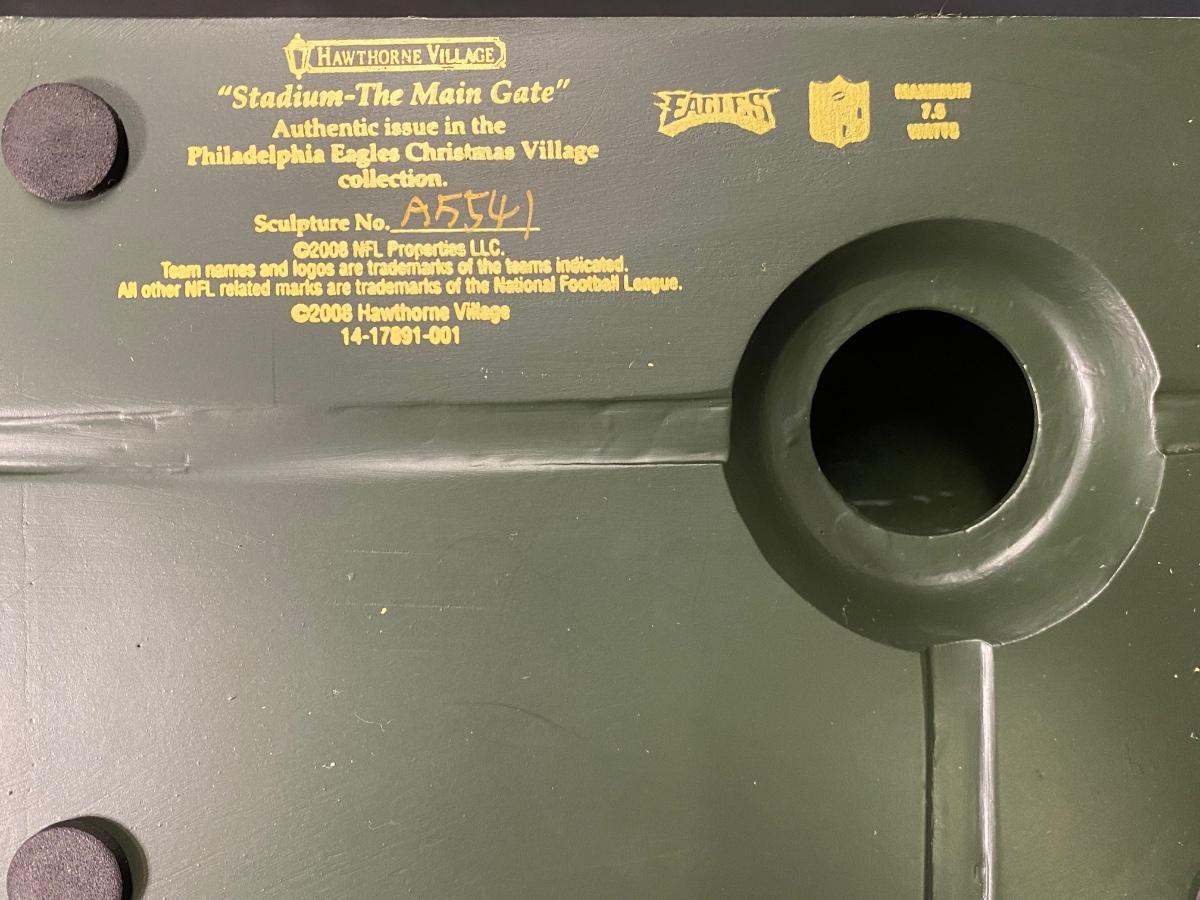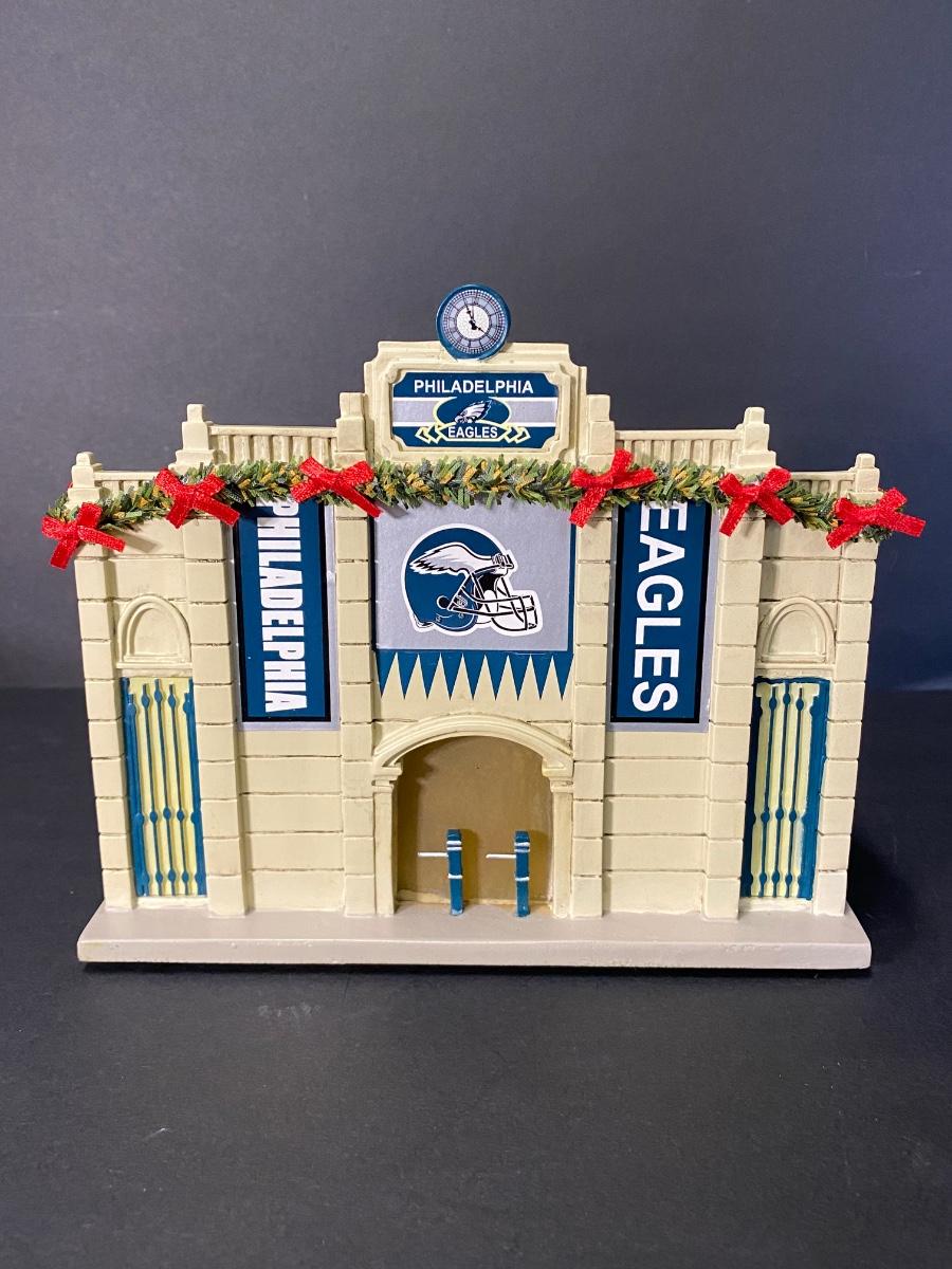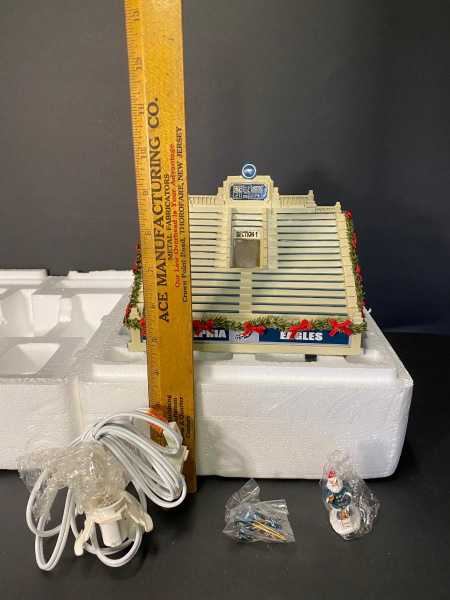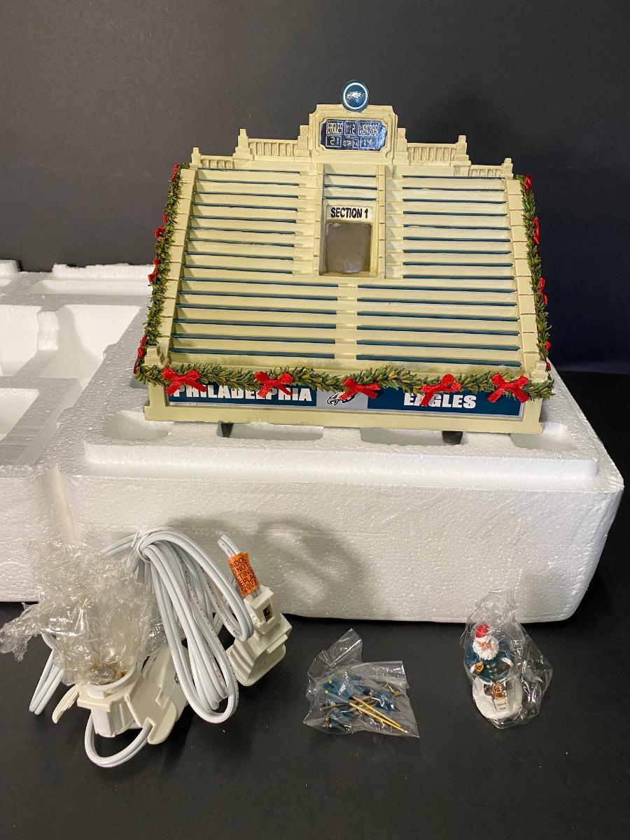 Authentic Philadelphia Eagles Hawthorne Christmas Village with the original Styrofoam/packing- no box, may or may not have the COA. Please see all pictures as they are the best representation of the items. Please see all pictures as they are the best representation of the items. The pictures show condition, measurements if taken, and what is included in the lot. Due to the large amount that we photograph and the time frame, we are not always able to take measurements. All items unless noted, are pre-owned and have been used. If you purchased furniture, you must bring help. We do not allow one person to carry large furniture out on their own. Bring help, tools and a truck for the safety of our client’s homes, and your personal safety. Any damages that result to the property including walls, and floors due to moving of the furniture will be charged to the buyer. Company policy. Thank you.