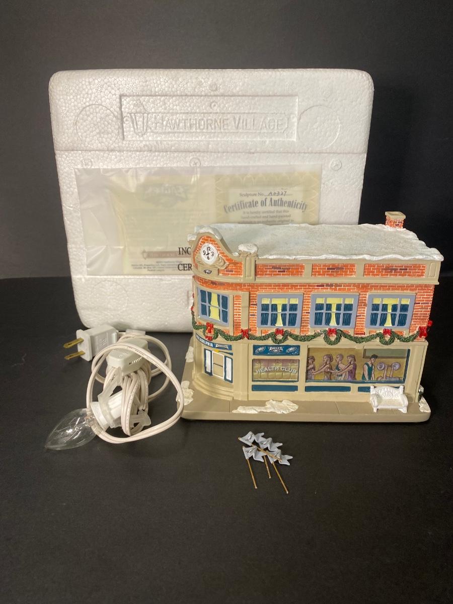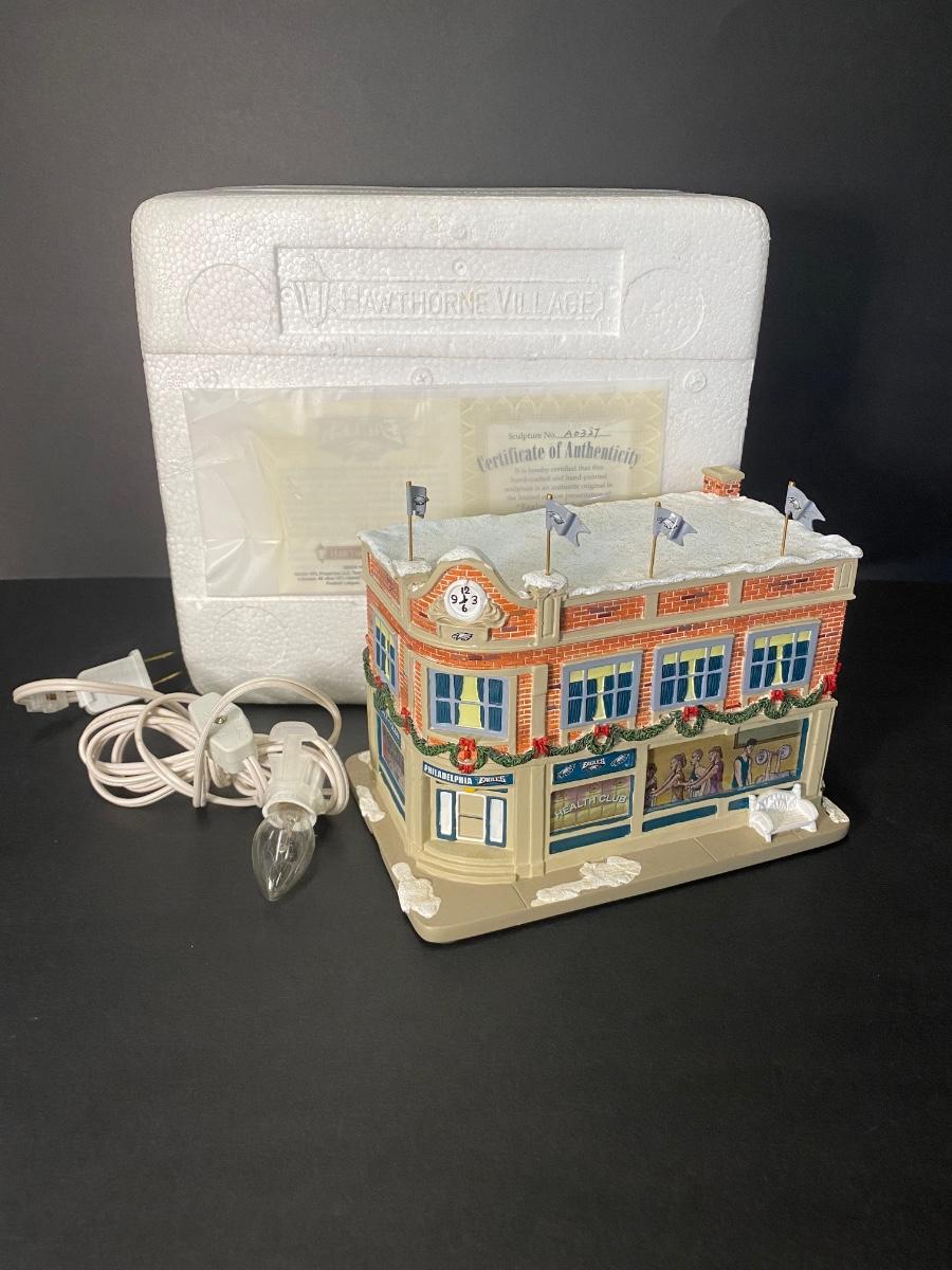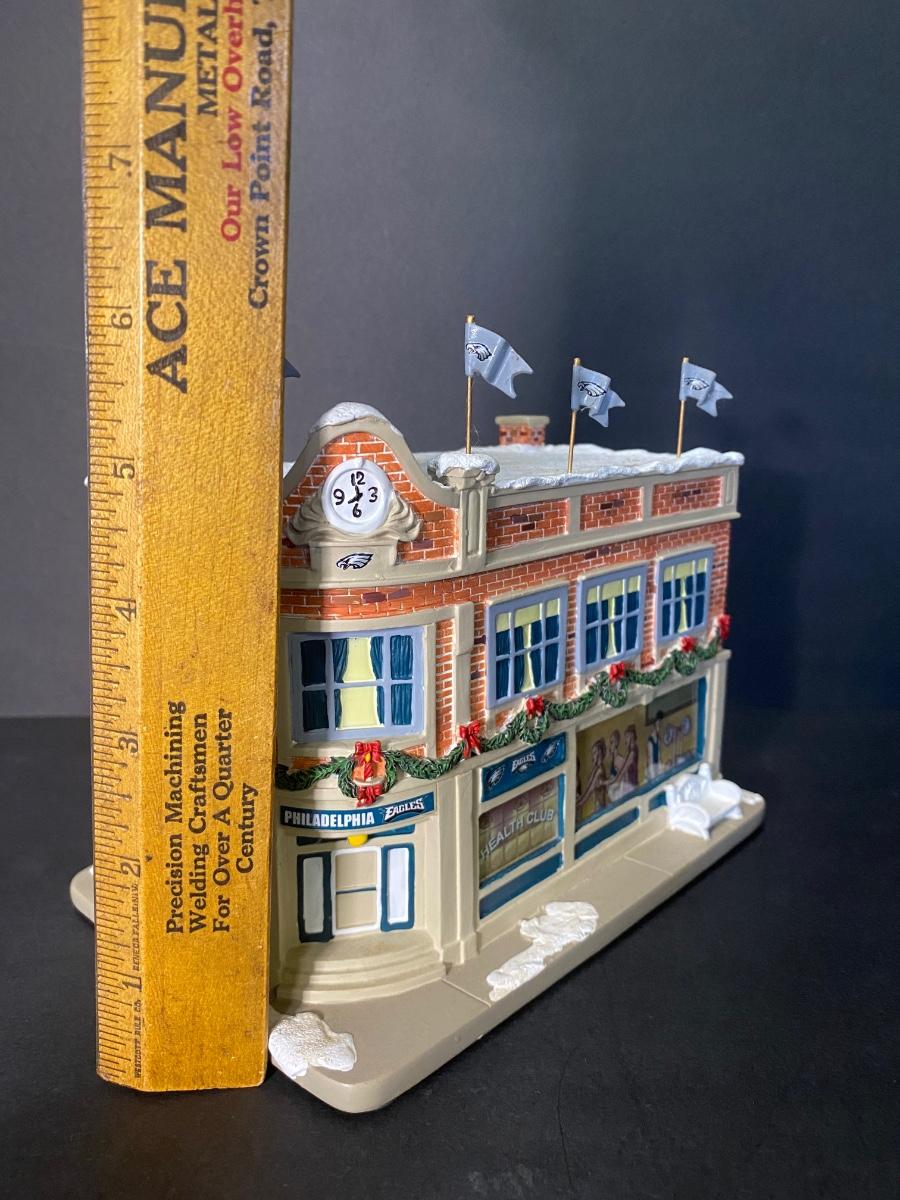 Authentic Philadelphia Eagles Hawthorne Christmas Village with the original Styrofoam/packing- no box, may or may not have the COA. Please see all pictures as they are the best representation of the items. Please see all pictures as they are the best representation of the items. The pictures show condition, measurements if taken, and what is included in the lot. Due to the large amount that we photograph and the time frame, we are not always able to take measurements. All items unless noted, are pre-owned and have been used. If you purchased furniture, you must bring help. We do not allow one person to carry large furniture out on their own. Bring help, tools and a truck for the safety of our client’s homes, and your personal safety. Any damages that result to the property including walls, and floors due to moving of the furniture will be charged to the buyer. Company policy. Thank you.