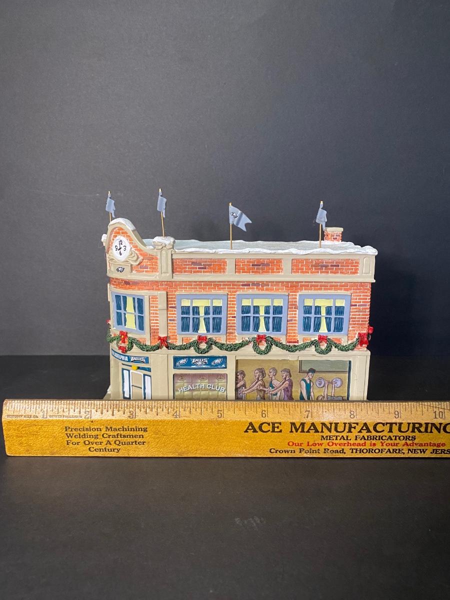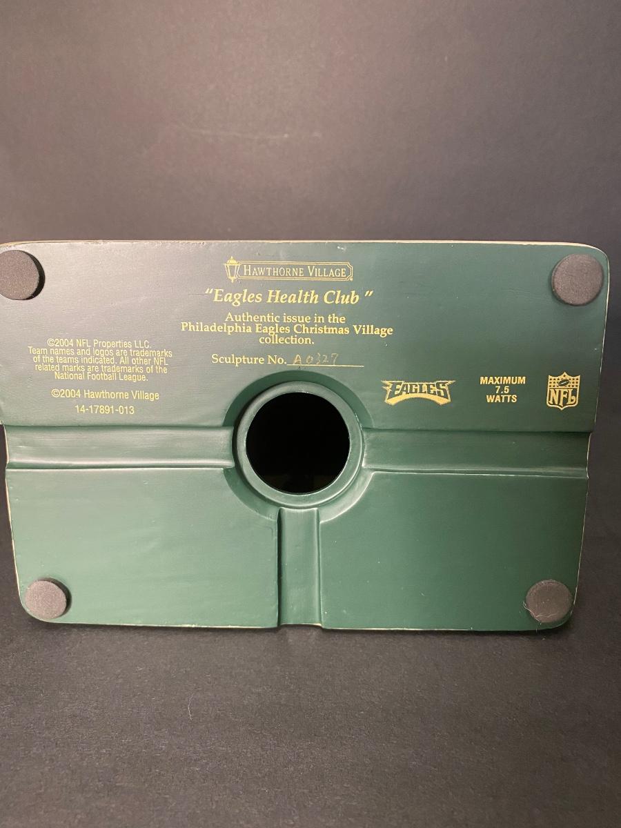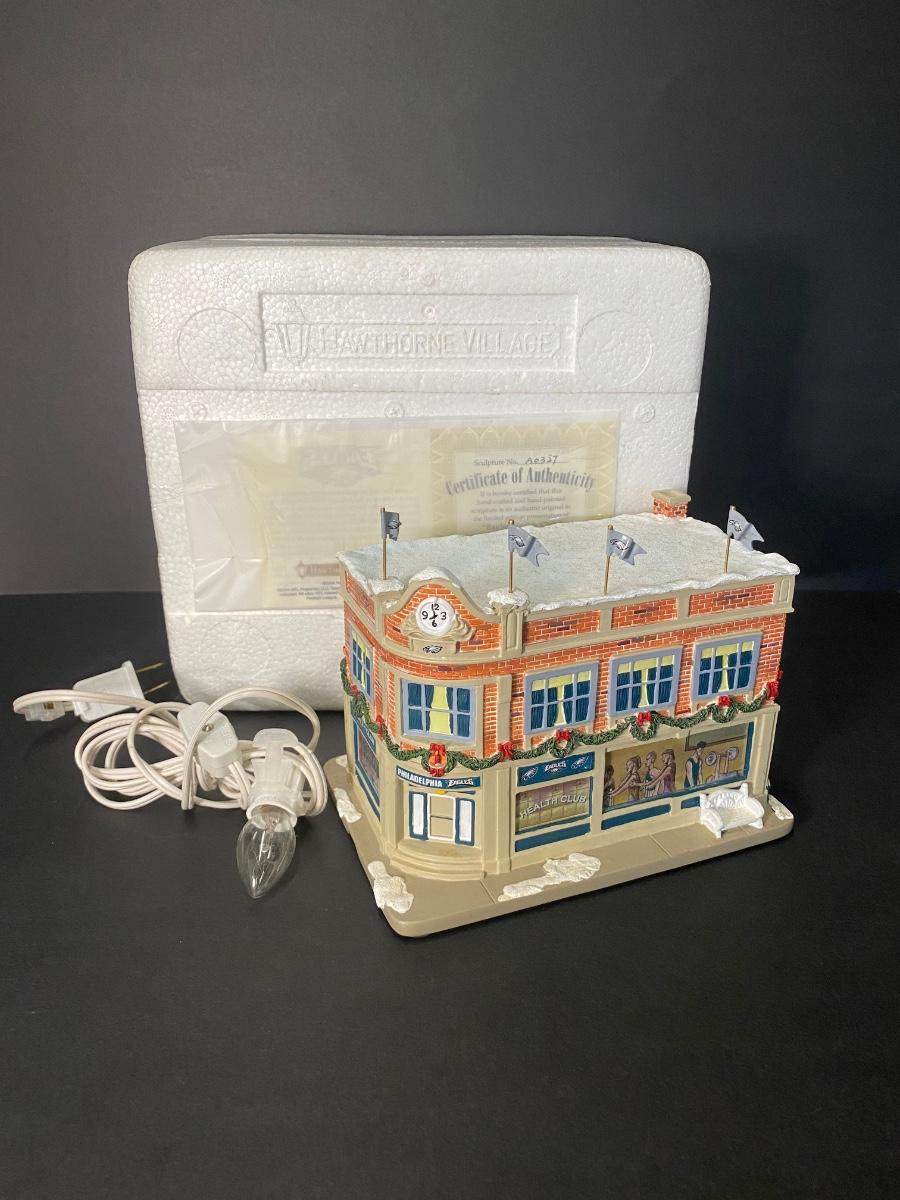 Authentic Philadelphia Eagles Hawthorne Christmas Village with the original Styrofoam/packing- no box, may or may not have the COA. Please see all pictures as they are the best representation of the items. Please see all pictures as they are the best representation of the items. The pictures show condition, measurements if taken, and what is included in the lot. Due to the large amount that we photograph and the time frame, we are not always able to take measurements. All items unless noted, are pre-owned and have been used. If you purchased furniture, you must bring help. We do not allow one person to carry large furniture out on their own. Bring help, tools and a truck for the safety of our client’s homes, and your personal safety. Any damages that result to the property including walls, and floors due to moving of the furniture will be charged to the buyer. Company policy. Thank you.