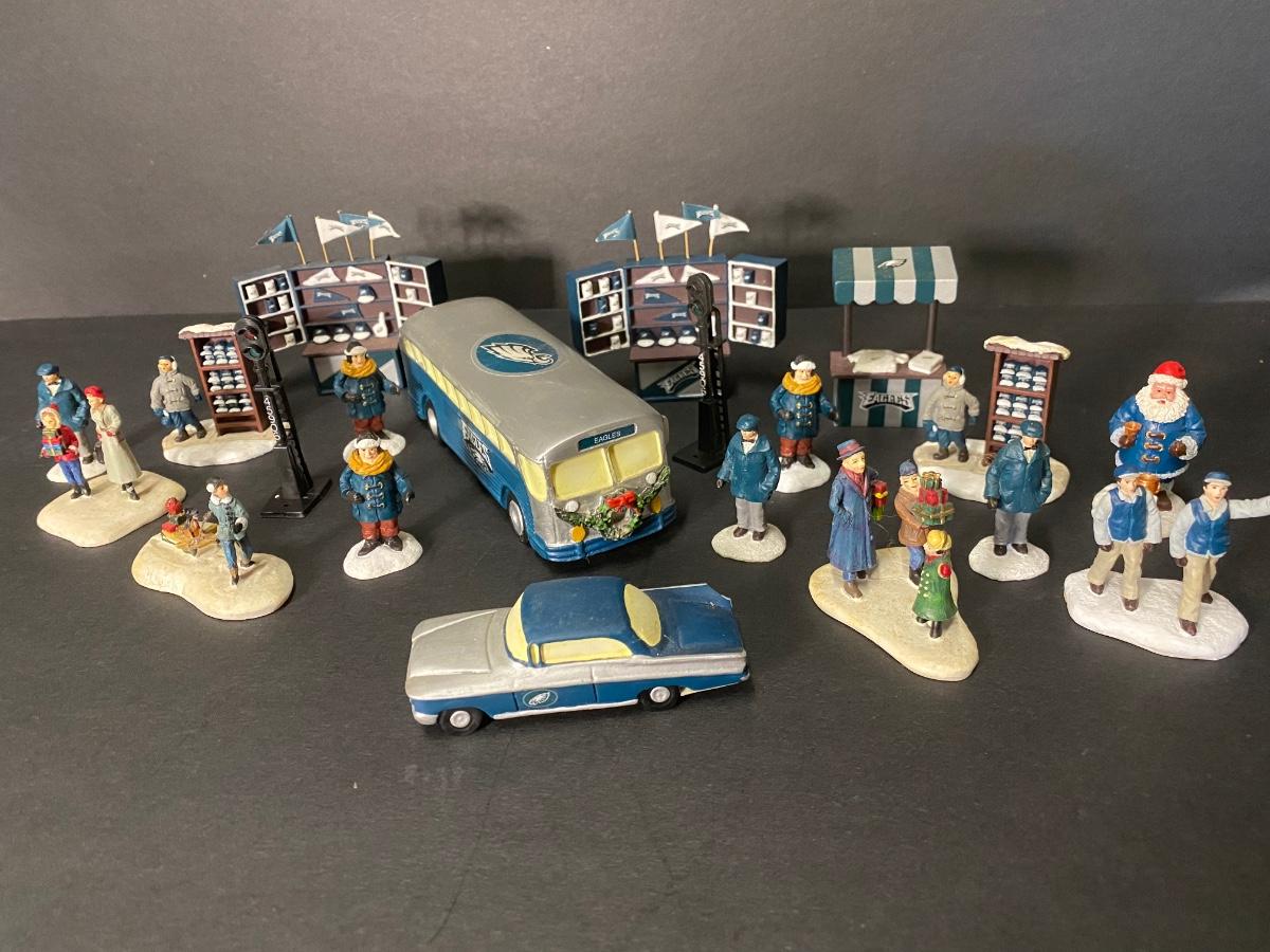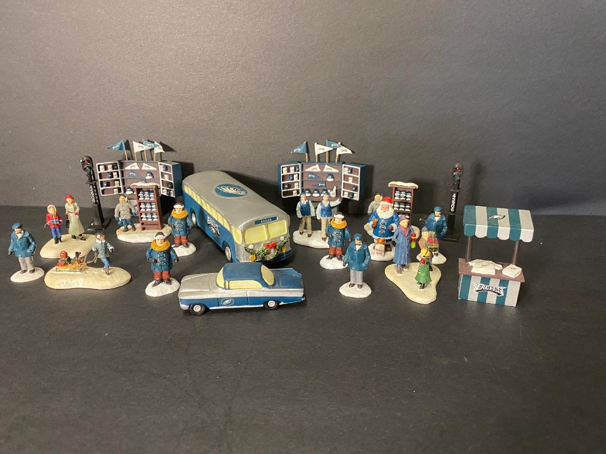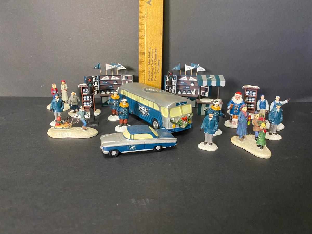 Authentic Philadelphia Eagles Hawthorne Christmas Village. Please see all pictures as they are the best representation of the items. Please see all pictures as they are the best representation of the items. The pictures show condition, measurements if taken, and what is included in the lot. Due to the large amount that we photograph and the time frame, we are not always able to take measurements. All items unless noted, are pre-owned and have been used. If you purchased furniture, you must bring help. We do not allow one person to carry large furniture out on their own. Bring help, tools and a truck for the safety of our client’s homes, and your personal safety. Any damages that result to the property including walls, and floors due to moving of the furniture will be charged to the buyer. Company policy. Thank you.