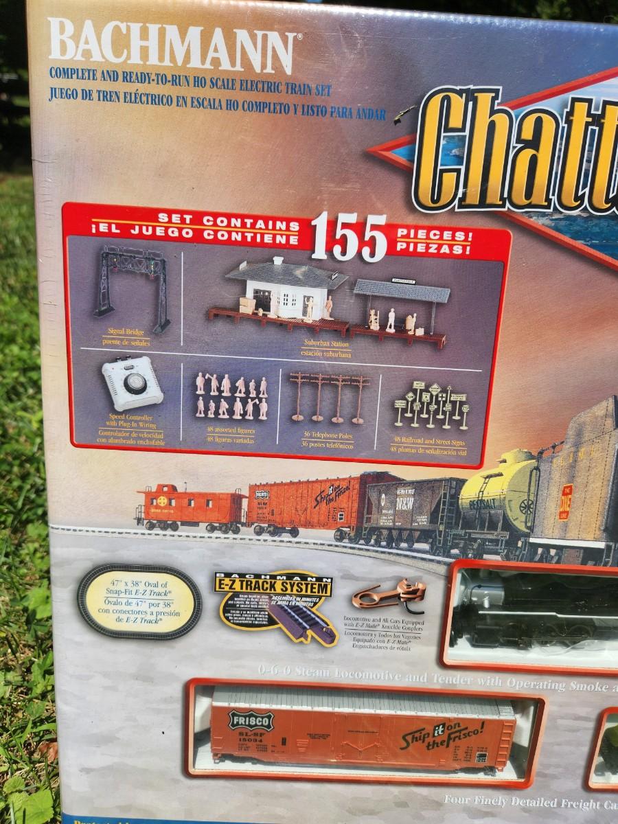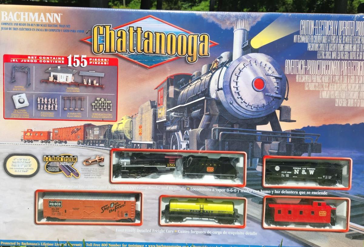 New in box, sealed, and unopened Bachmann Chattanooga HO scale electric train set ready-to-run. This set has everything you need to get you started on your adventure. The track has an E-Z track system which snaps into place with no tools required. Oval track 47"×38"