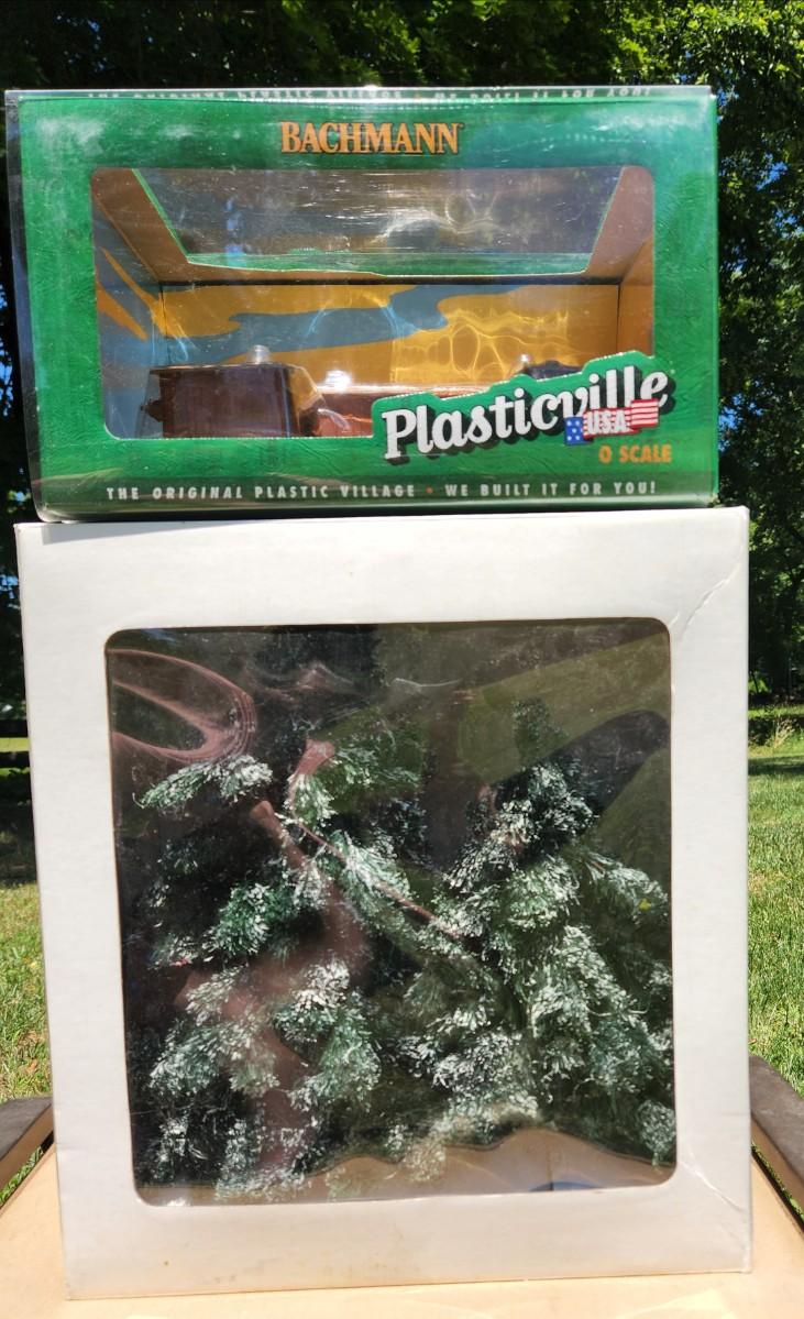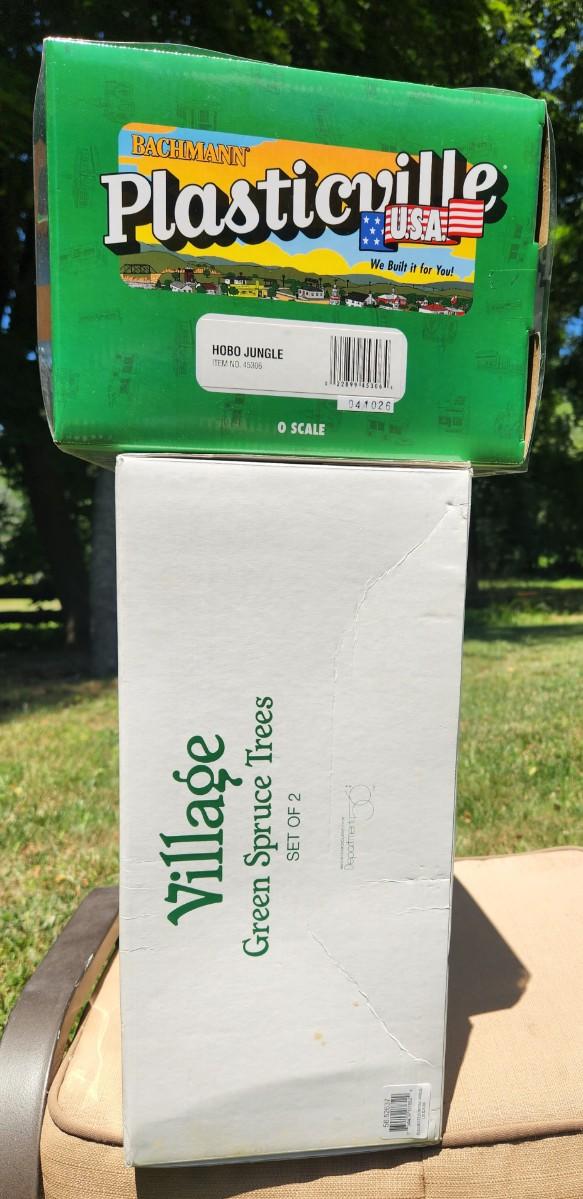 Lot 80J: Bachmann O Scale Hobo Jungle & Dept. 56 Spruce Trees w/Boxes