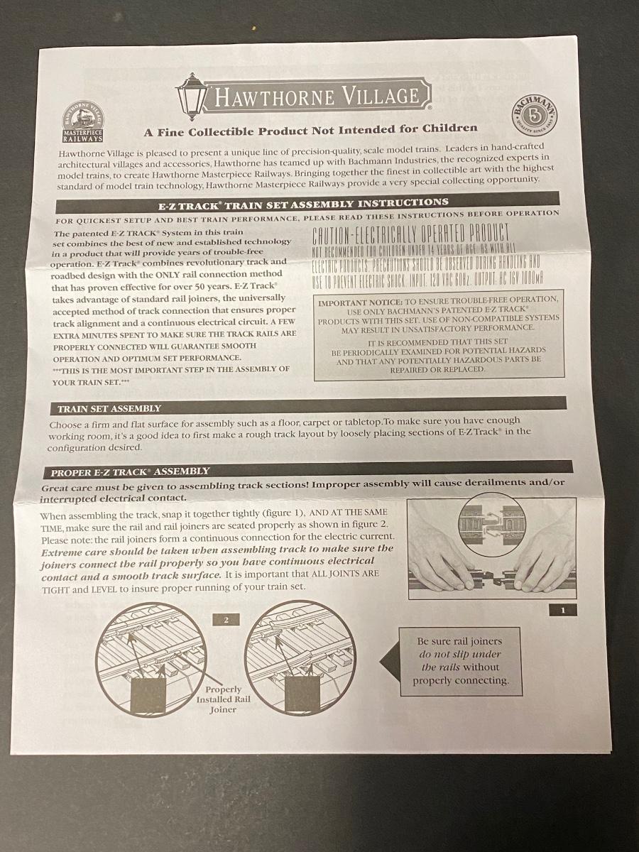 Large lot of EZ track for Harthorne Village trains sets. Please see all pictures as they are the best representation of the items. The pictures show condition, measurements if taken, and what is included in the lot. Due to the large amount that we photograph and the time frame, we are not always able to take measurements. All items unless noted, are pre-owned and have been used. If you purchased furniture, you must bring help. We do not allow one person to carry large furniture out on their own. Bring help, tools and a truck for the safety of our client’s homes, and your personal safety. Any damages that result to the property including walls, and floors due to moving of the furniture will be charged to the buyer. Company policy. Thank you.