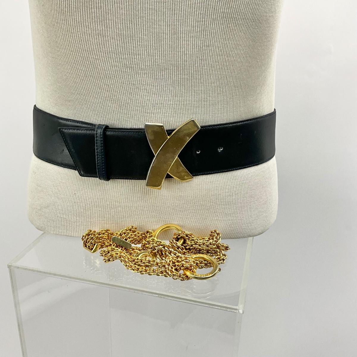 Lot 739 Paloma Picasso Navy Blue Leather Belt with Gold Tone “ X “ Buckle & Paloma Picasso Gold Tone Chain Belt