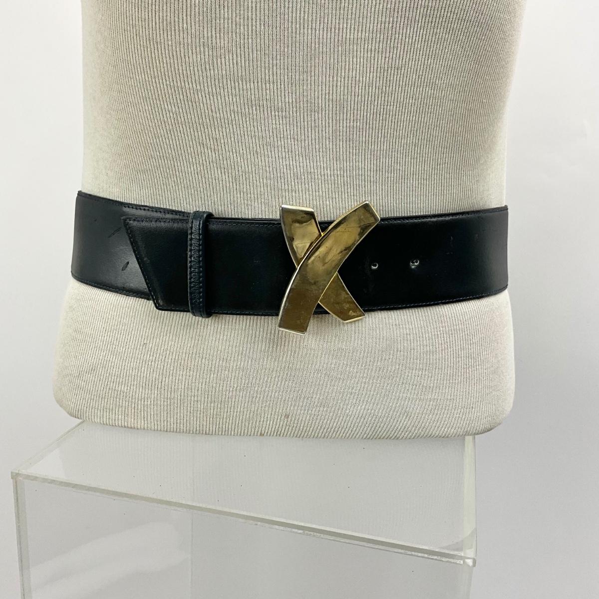 Paloma Picasso Navy Blue Leather Belt with Gold Tone “ X “ Buckle