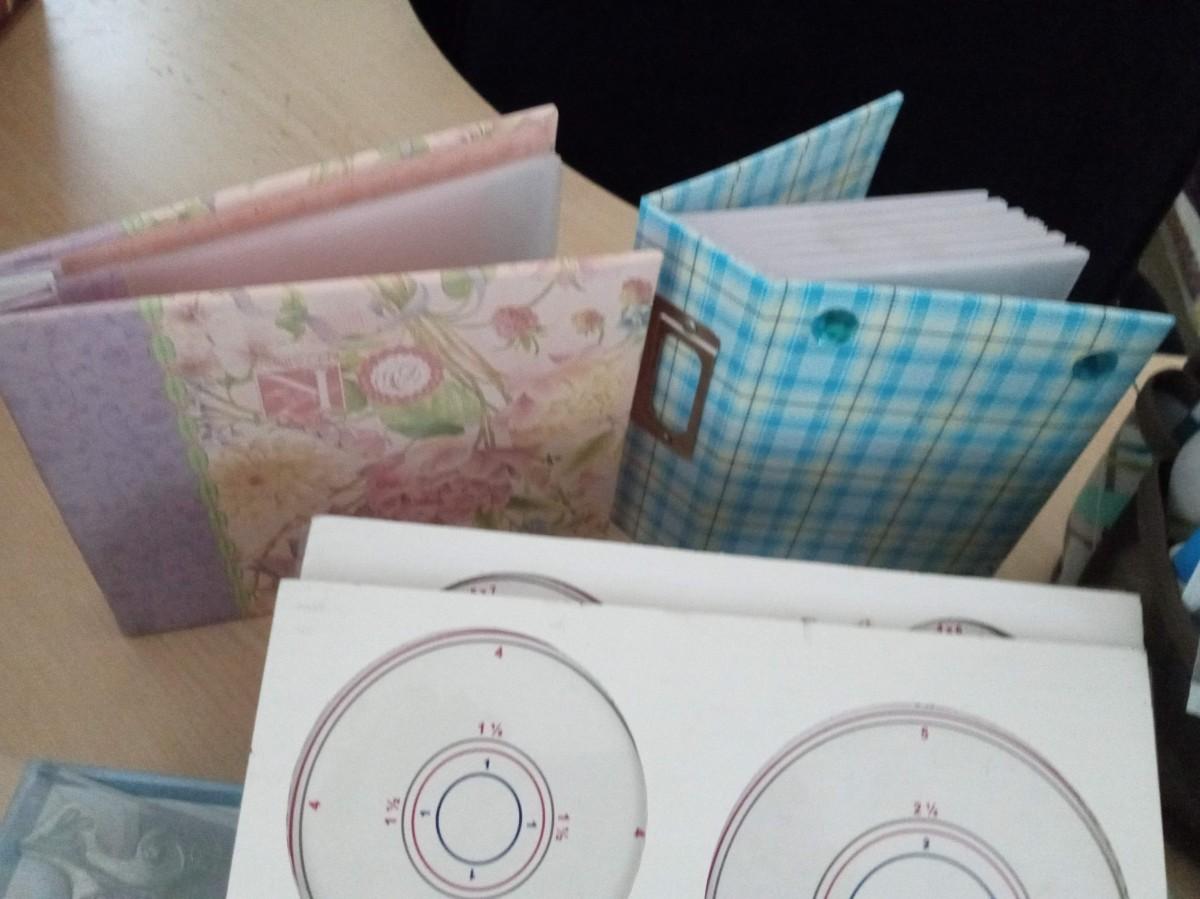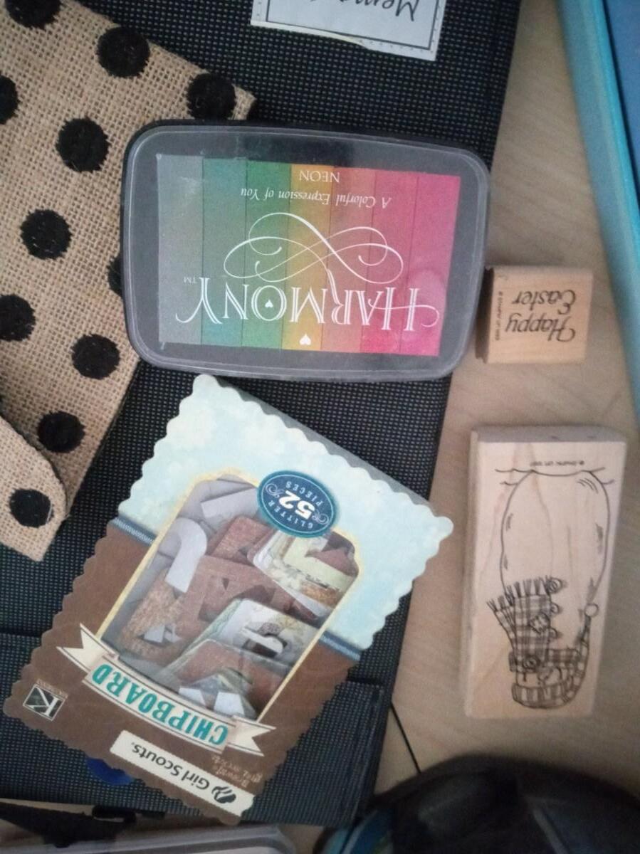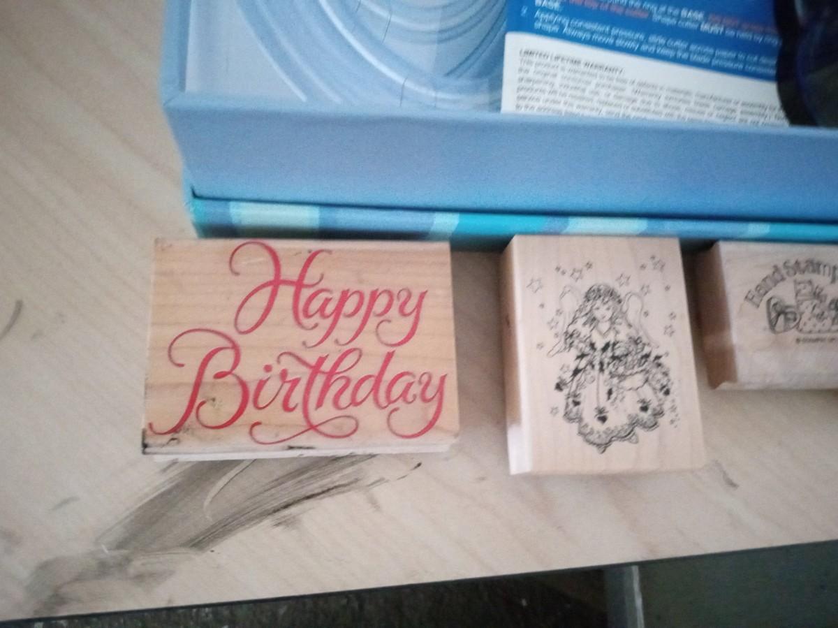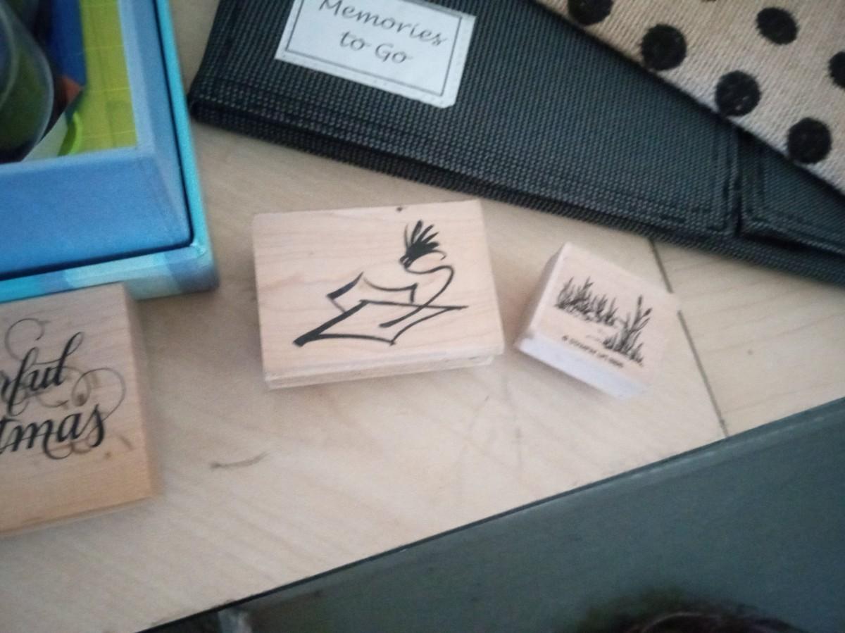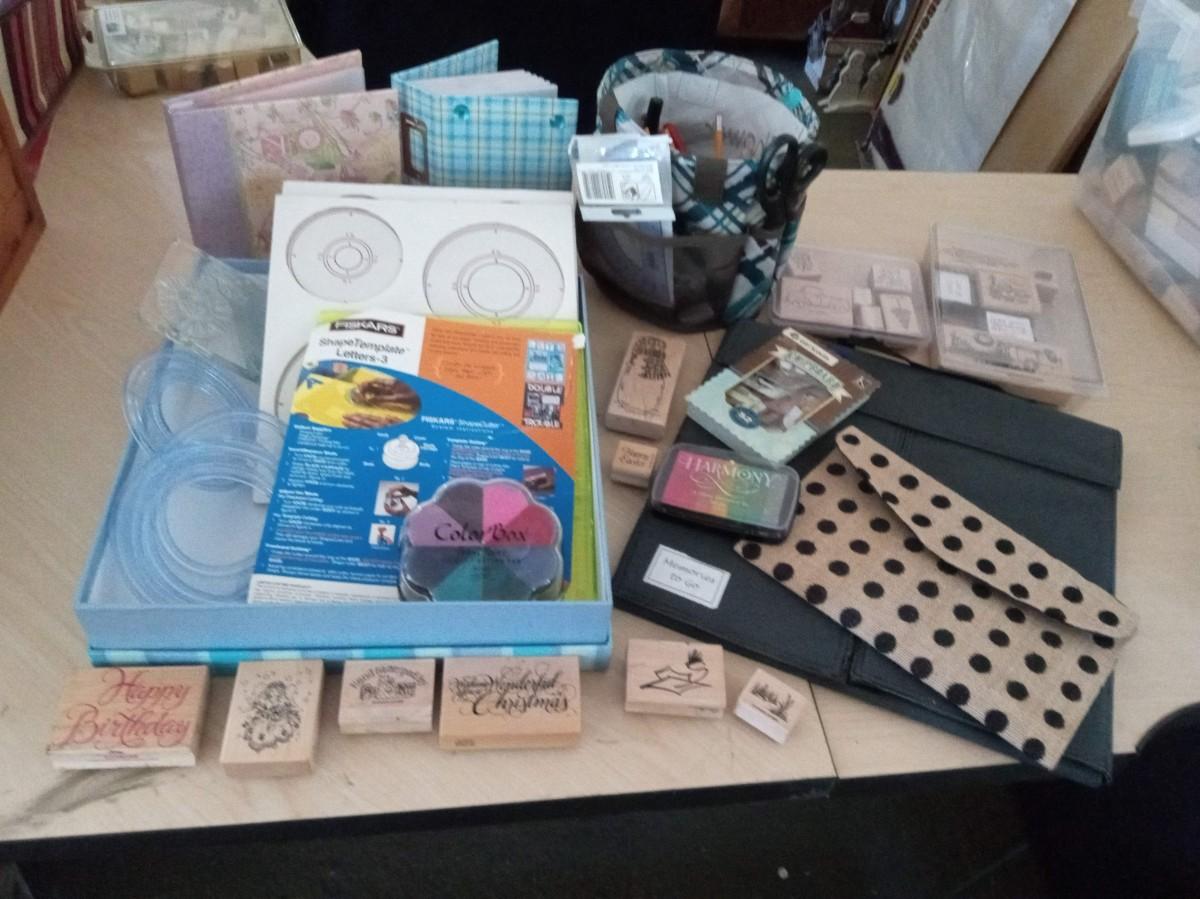 RUBBER STAMPS, TEMPLATES, 2 SMALL PHOTO ALBUMS, COLOR BOXES, AND MORE