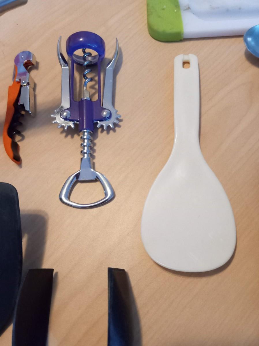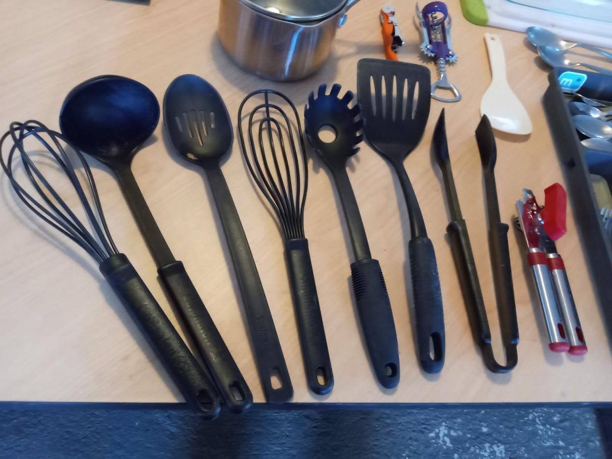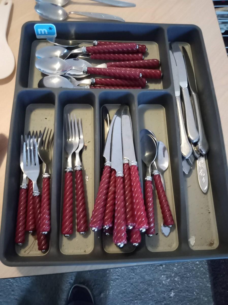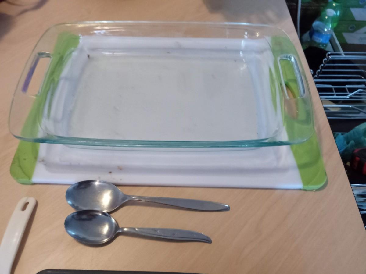 LOT 450  KITCHEN UTENSILS, FLATWARE, CUTTING BOARD, BAKING DISH AND SAUCEPAN (SE)