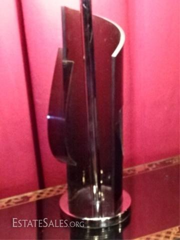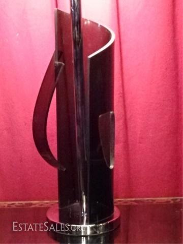 LOT 73C: MODERN BLACK ACRYLIC AND CHROME TABLE LAMP ON CHROME BASE, VERY GOOD CONDITION, 35"H, SKU355.29