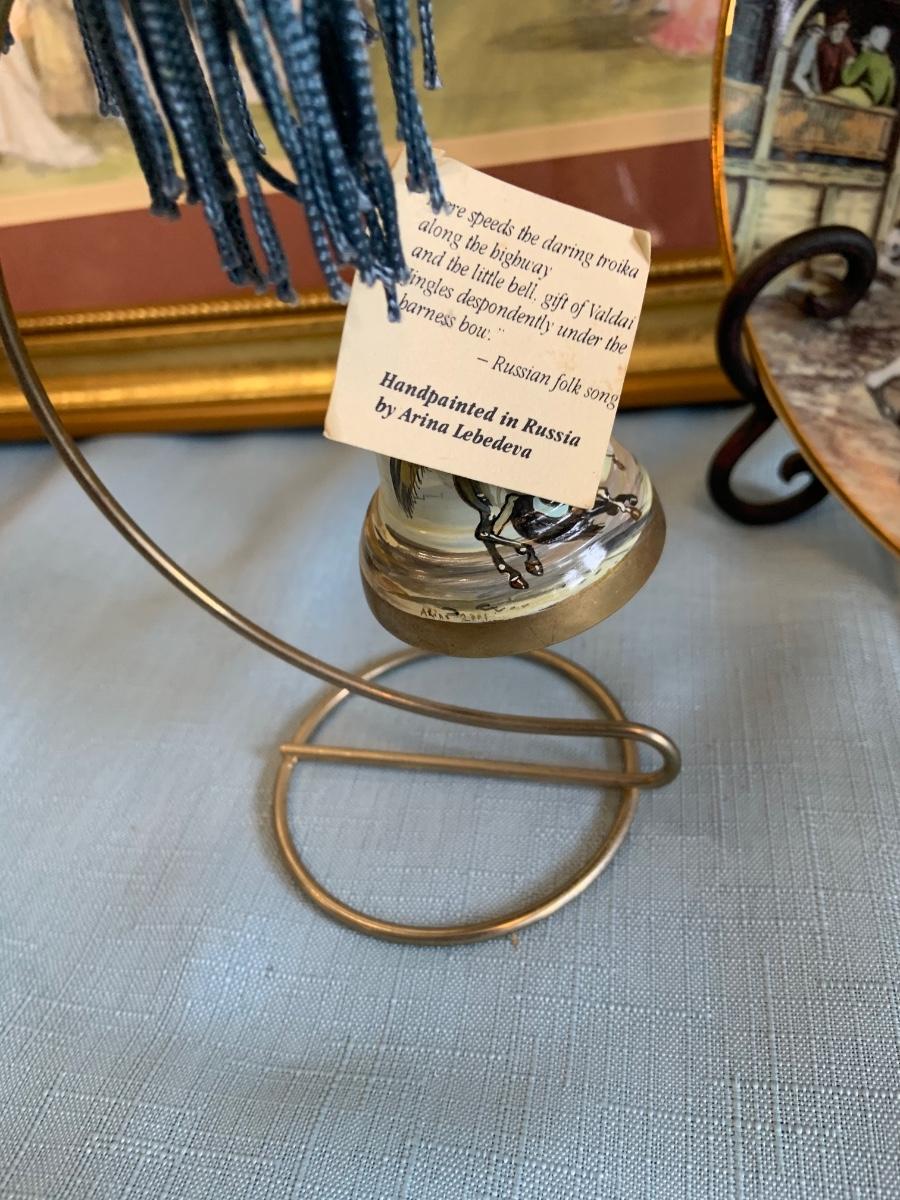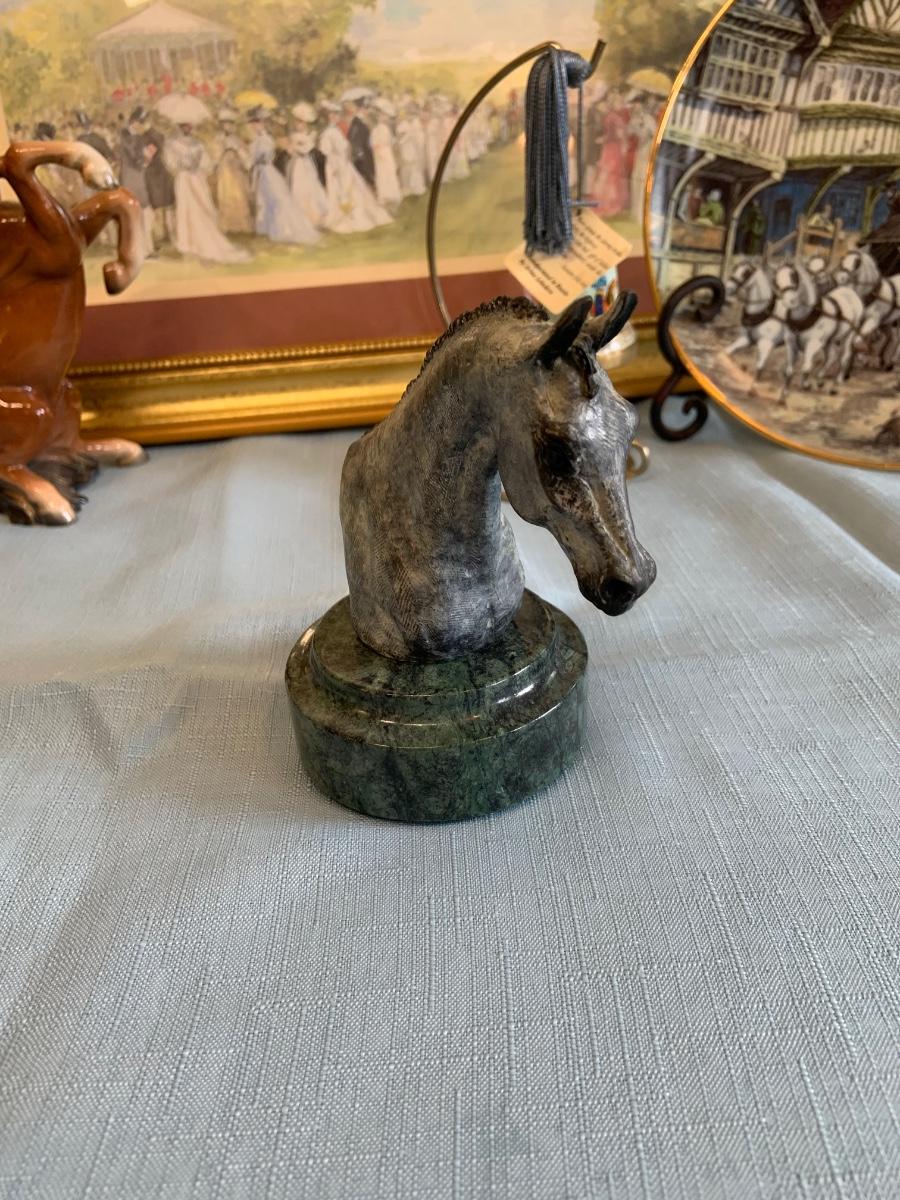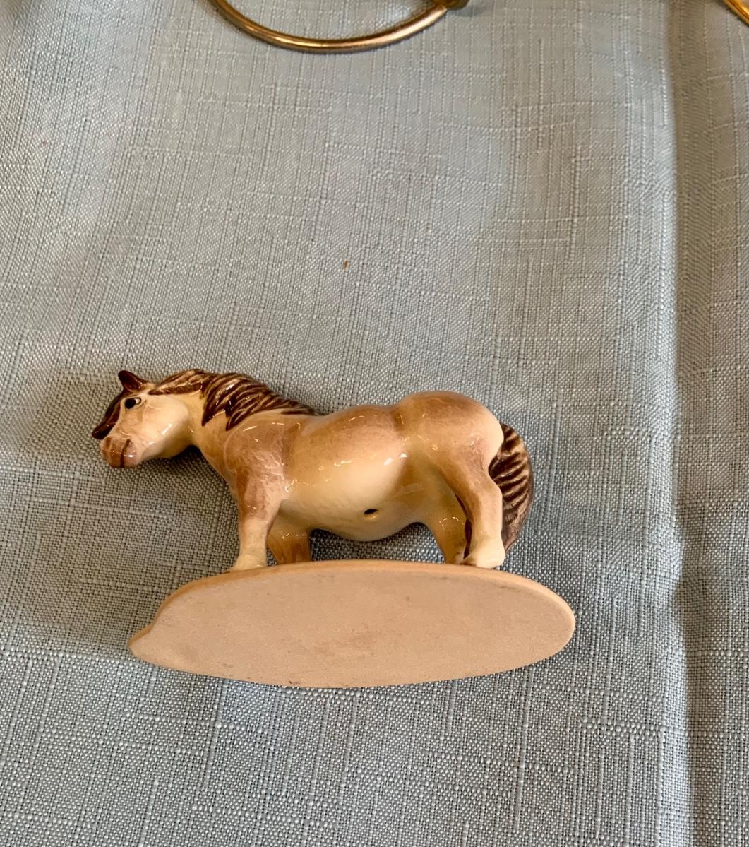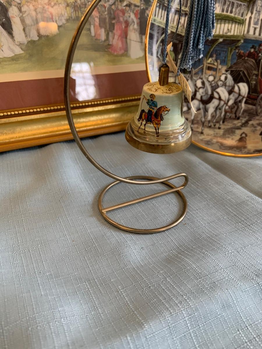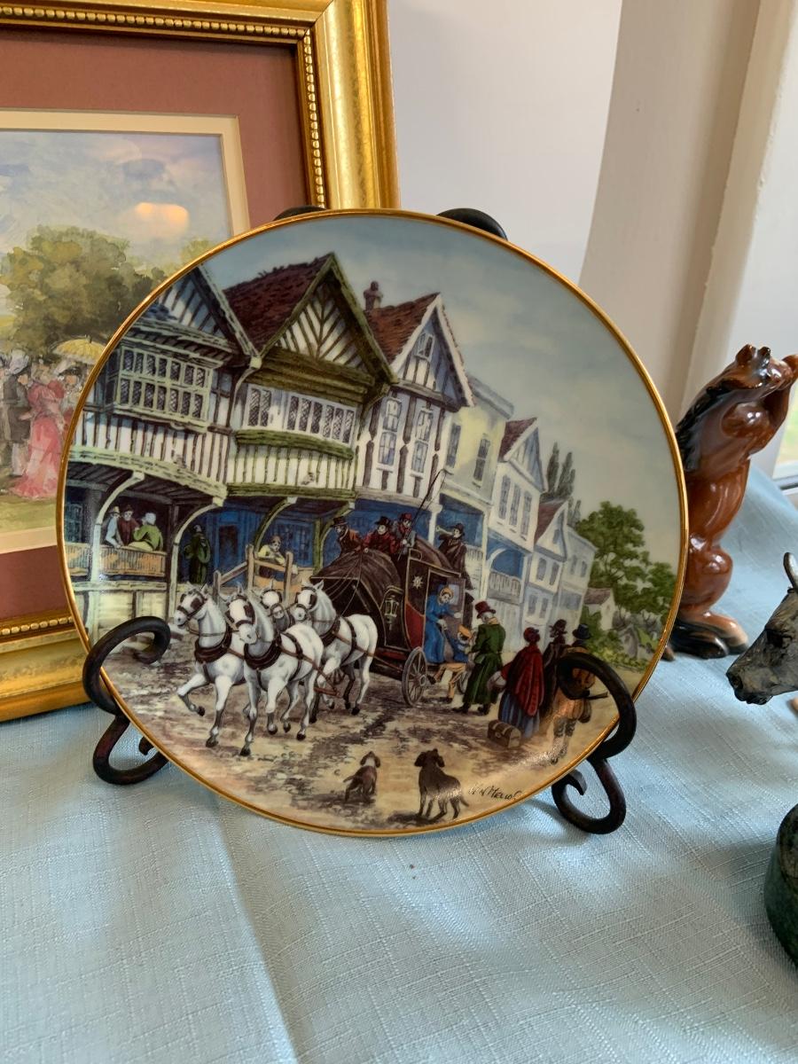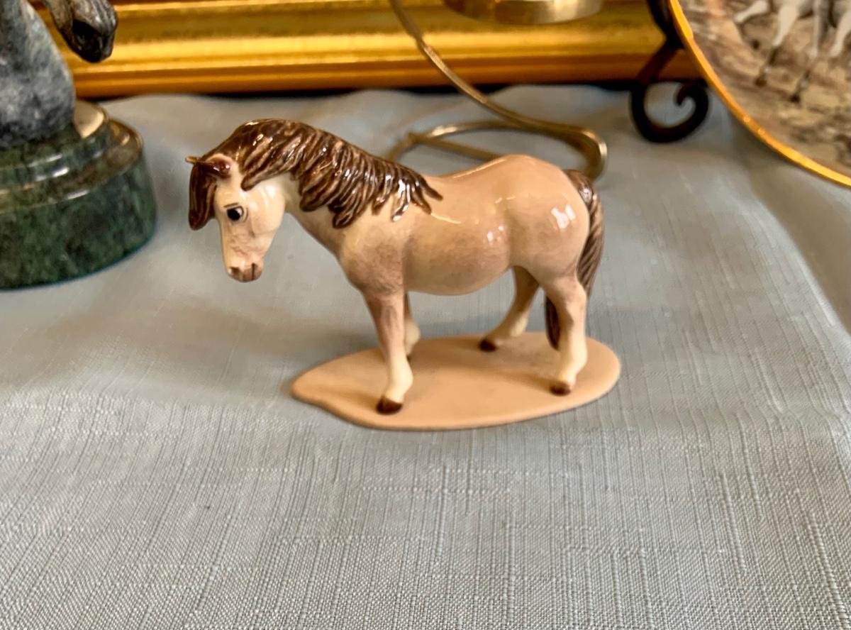Lot 73G: Horse Themed Home Decor Featuring Hand Pained Bell, Signed Wall Art, Trinity Collection Plate , Halsey Japan Horse Figurine & More