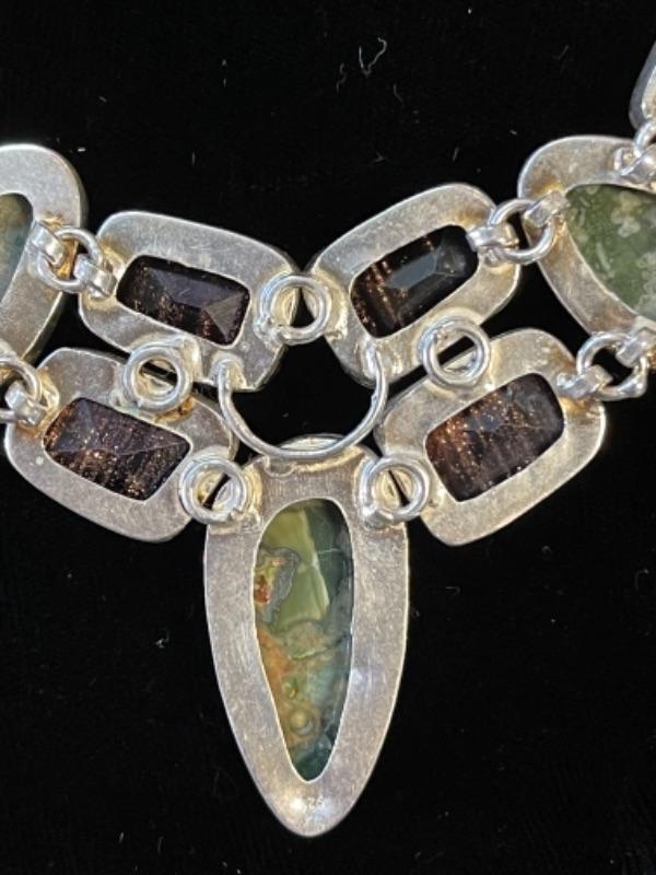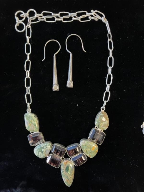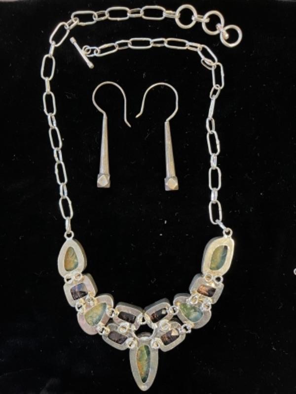 Lot 73LD. Vintage sterling silver and gem stone necklace with sterling silver drop earrings (marked)--$185