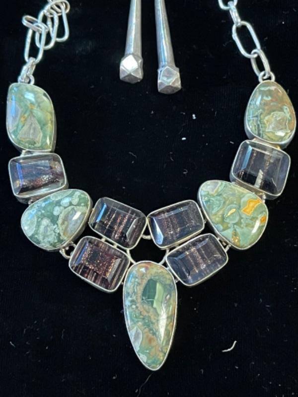 Lot 73LD. Vintage sterling silver and gem stone necklace with sterling silver drop earrings (marked)--$151.70