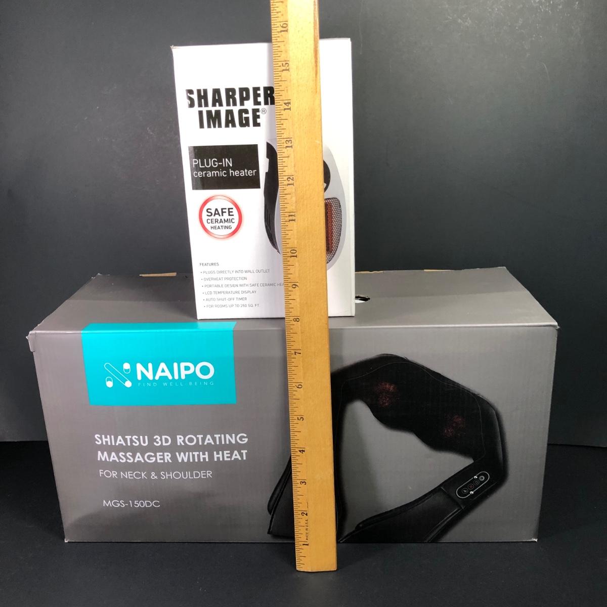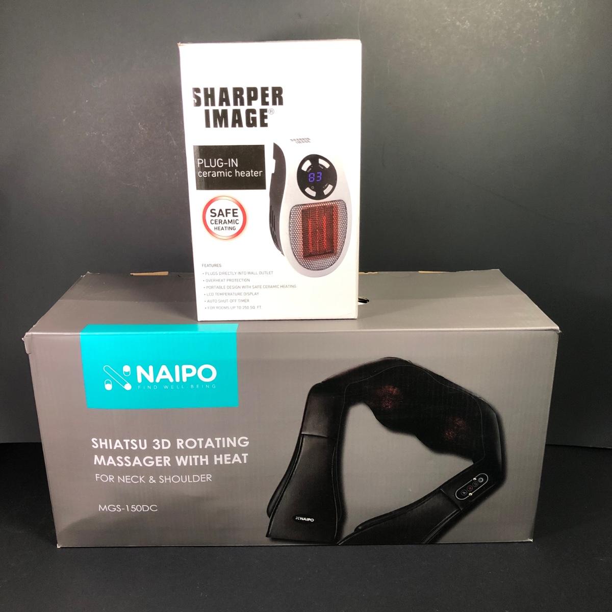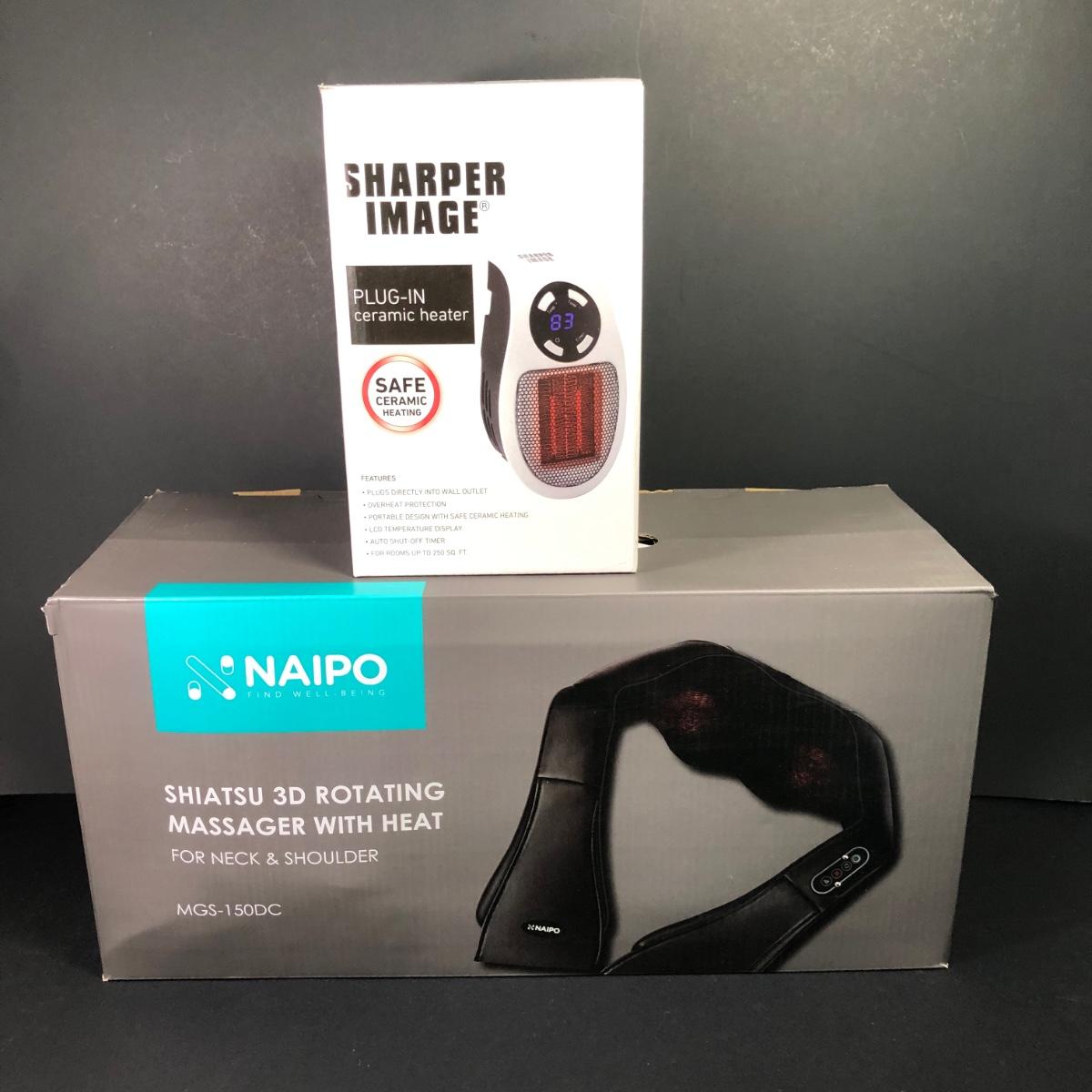LOT 73M: Naipo Shiatsu 3D Rotating Massager w/ Heat Model MYS-150DC & Sharper Image Plug-in Ceramic Heater