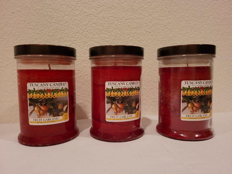 Lot 74: (3) New TUSCANY CANDLE CO. "Fruit Garland" Christmas Scented Candles