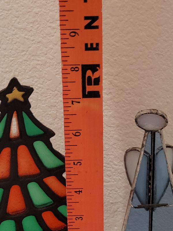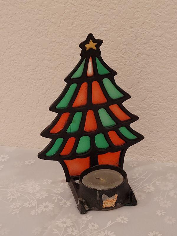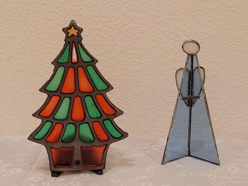 Lot 74: Vintage Stained Glass Christmas Tree Candle Holder and Angel