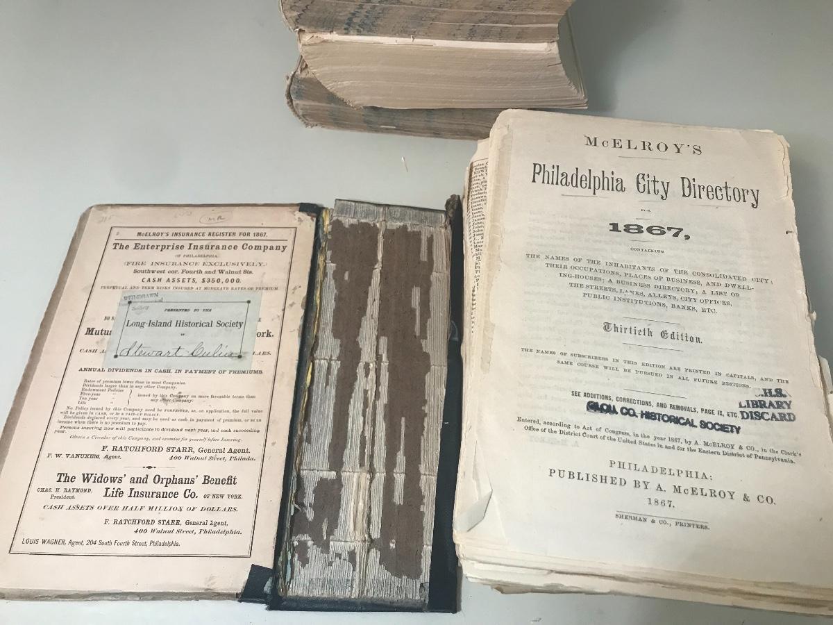 Please see all pictures as they are the best representation of the items. In various conditions. Most covers are off or coming off. McElroy's Philadelphia Directory - from 1867 - is completely unbound. The pictures show condition, measurements if taken, and what is included in the lot. Due to the large amount that we photograph and the time frame, we are not always able to take measurements. All items unless noted, are pre-owned and have been used. If you purchased furniture, you must bring help. We do not allow one person to carry large furniture out on their own. Bring help, tools and a truck for the safety of our client’s homes, and your personal safety. Company policy. Thank you.