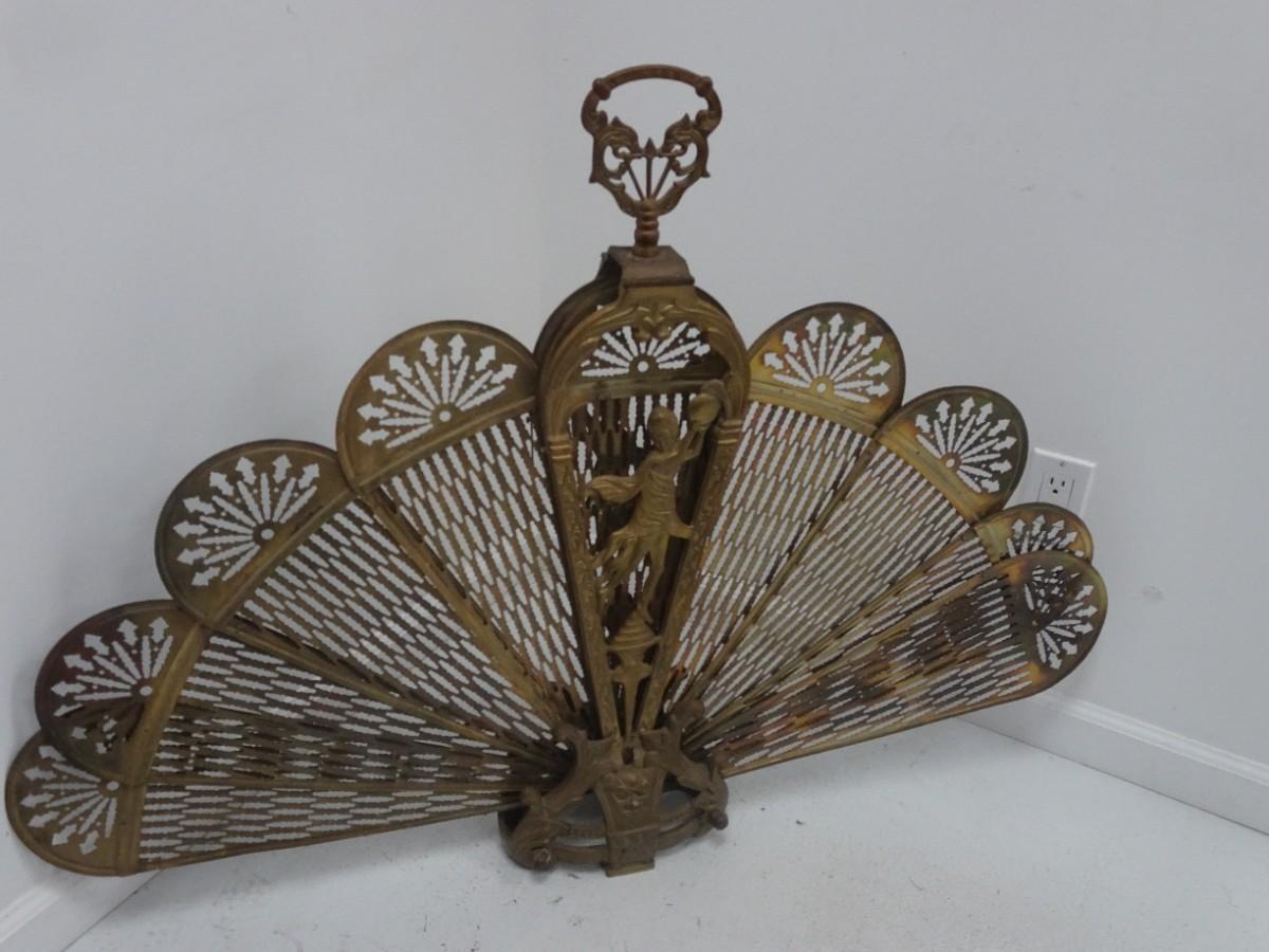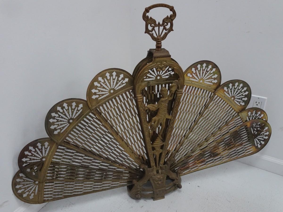 LOT 74 VINTAGE BRASS PEACOCK FOLDING FAN FIREPLACE SCREEN