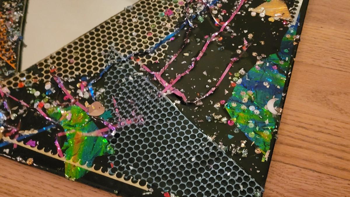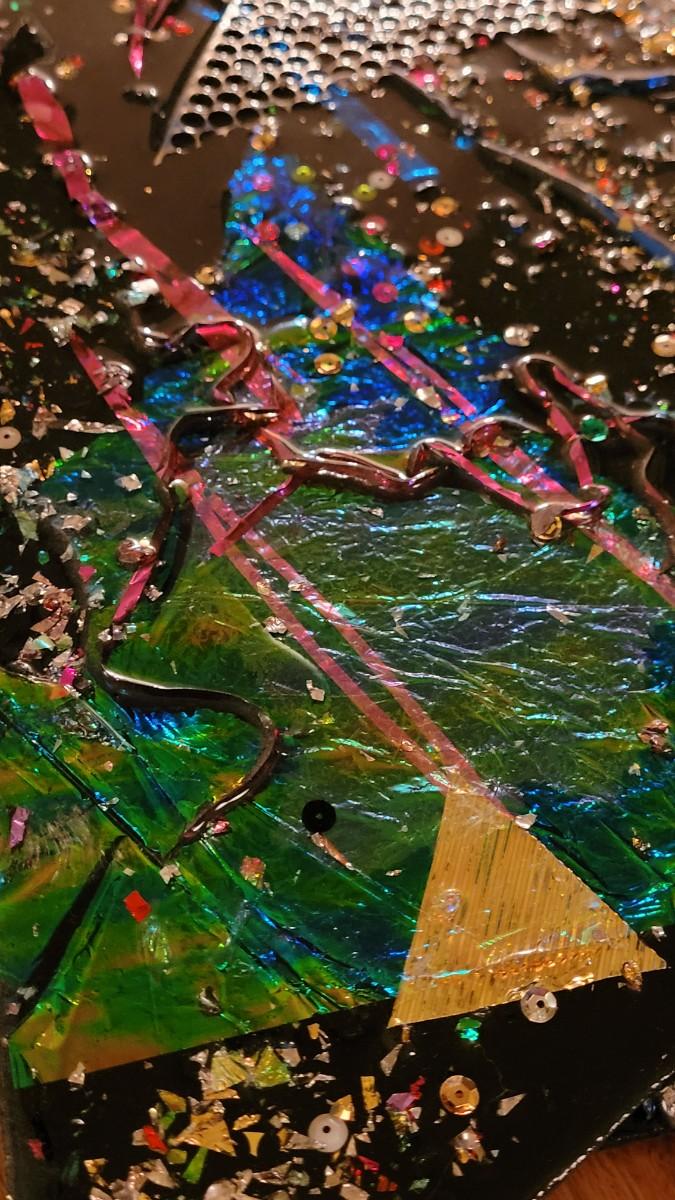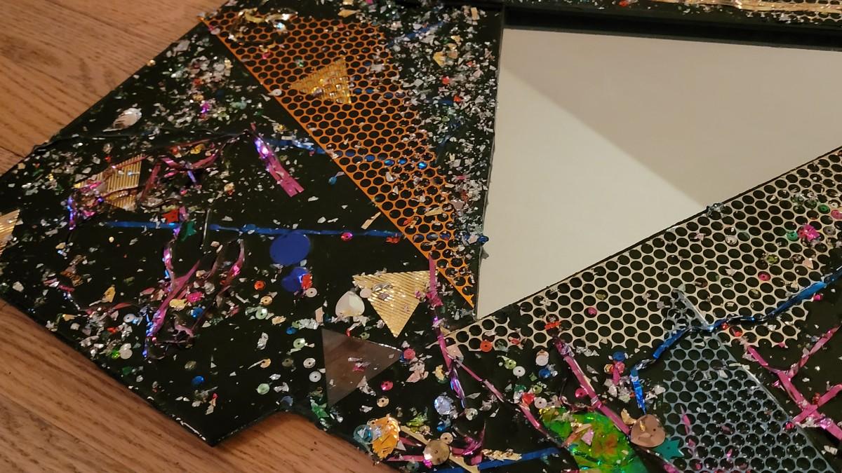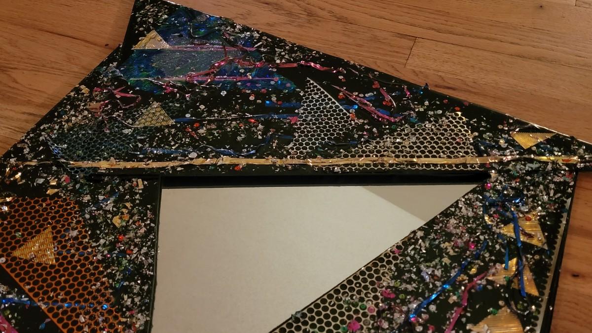 A Mirror surrounded by a beautiful assemblage of shiny bits & pieces.