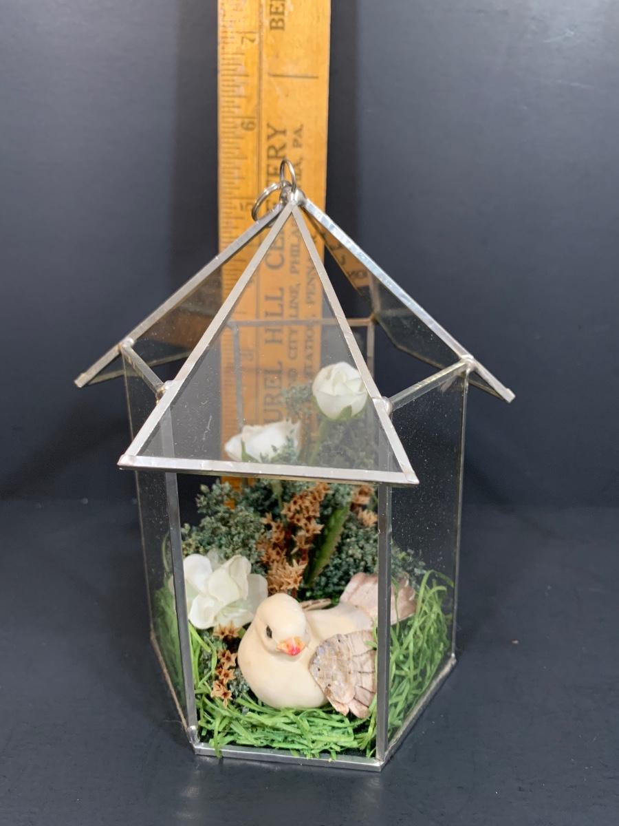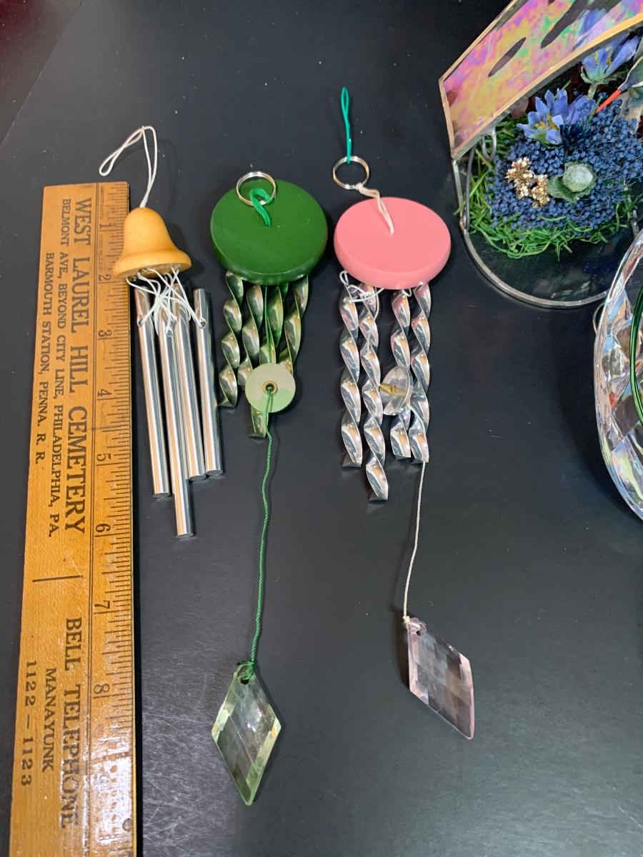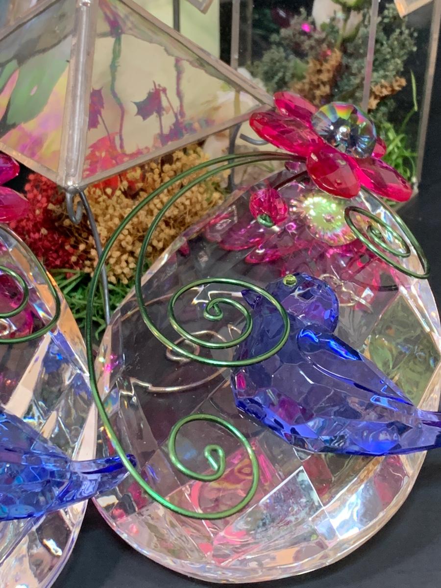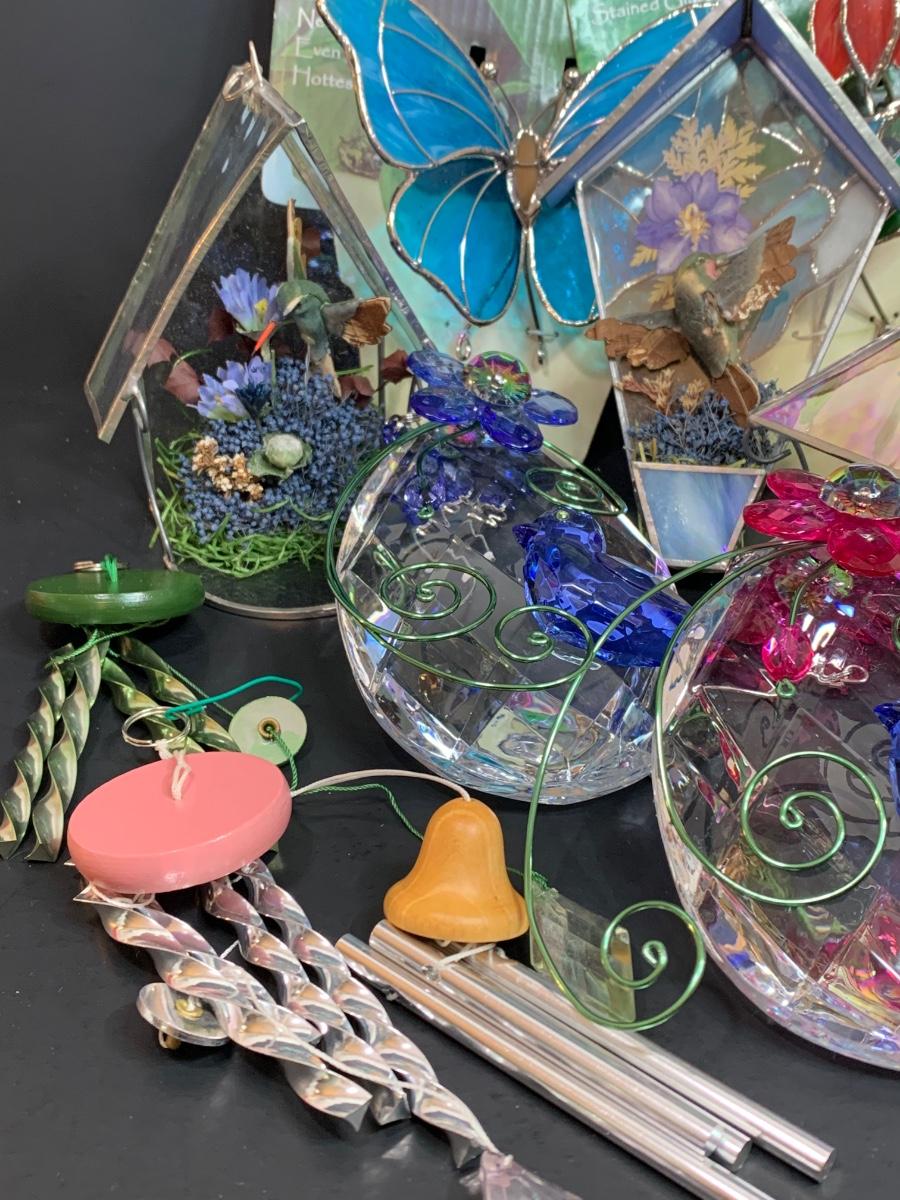 Outdoor Decor and more including wind chimes, planter ornaments, sun catchers and glass terrariums.