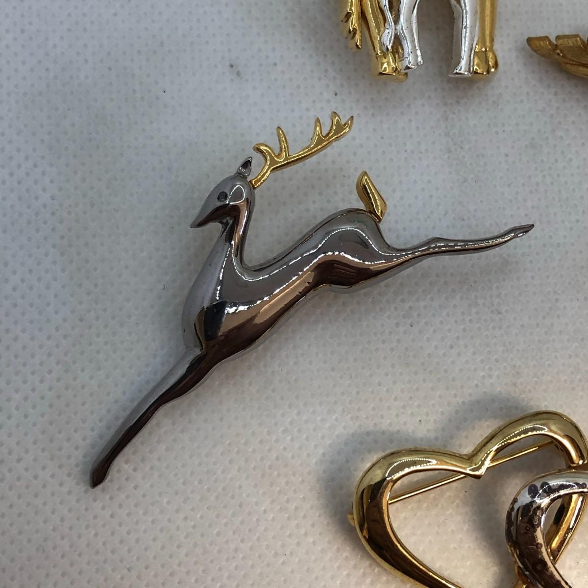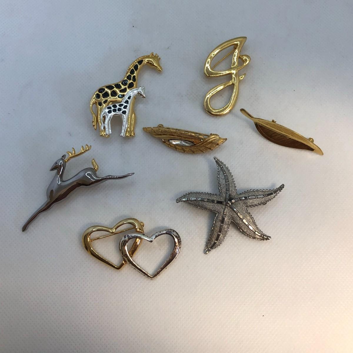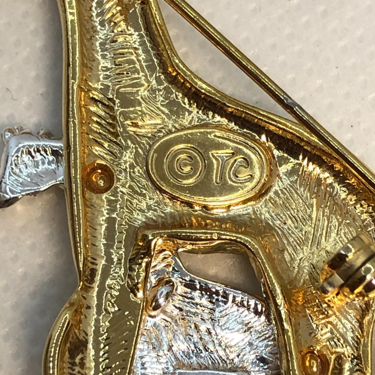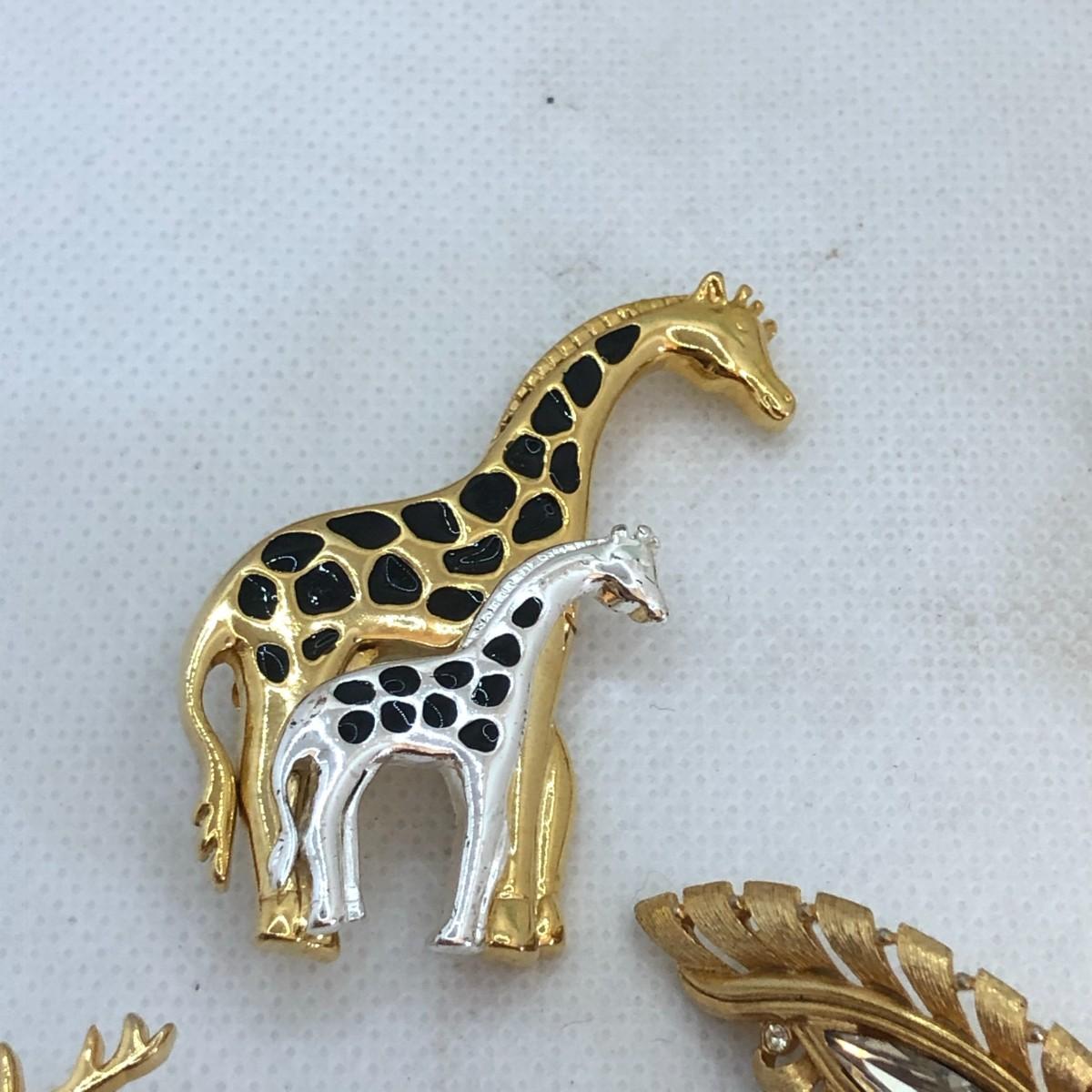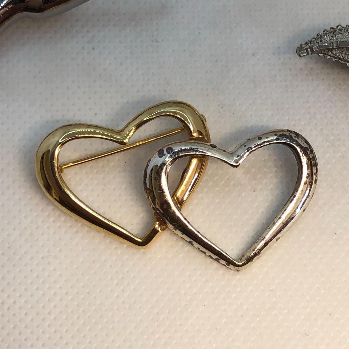 The giraffe is marked TC and the double hearts is marked Gerry's. The silver is a little discolored on the double heart brooch and I don't know if it can be remedied with cleaning or if it is permanent.