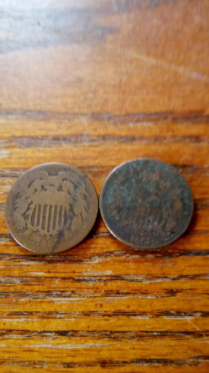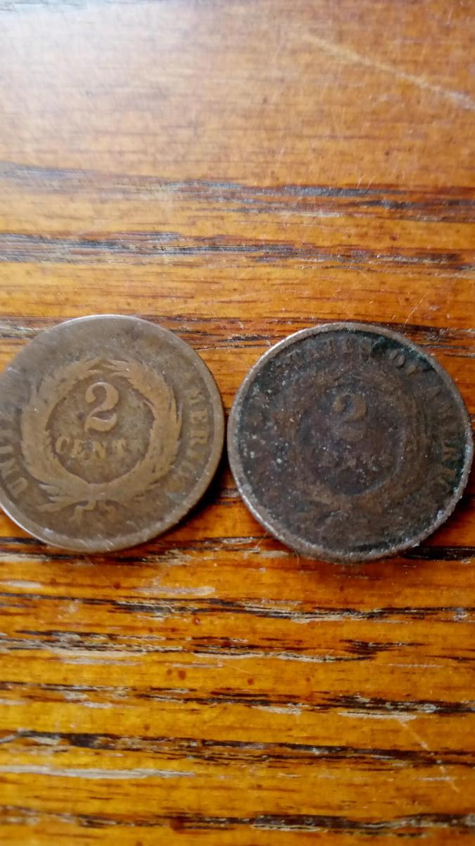 LOT 74  TWO CIVIL WAR DATED TWO CENT COINS