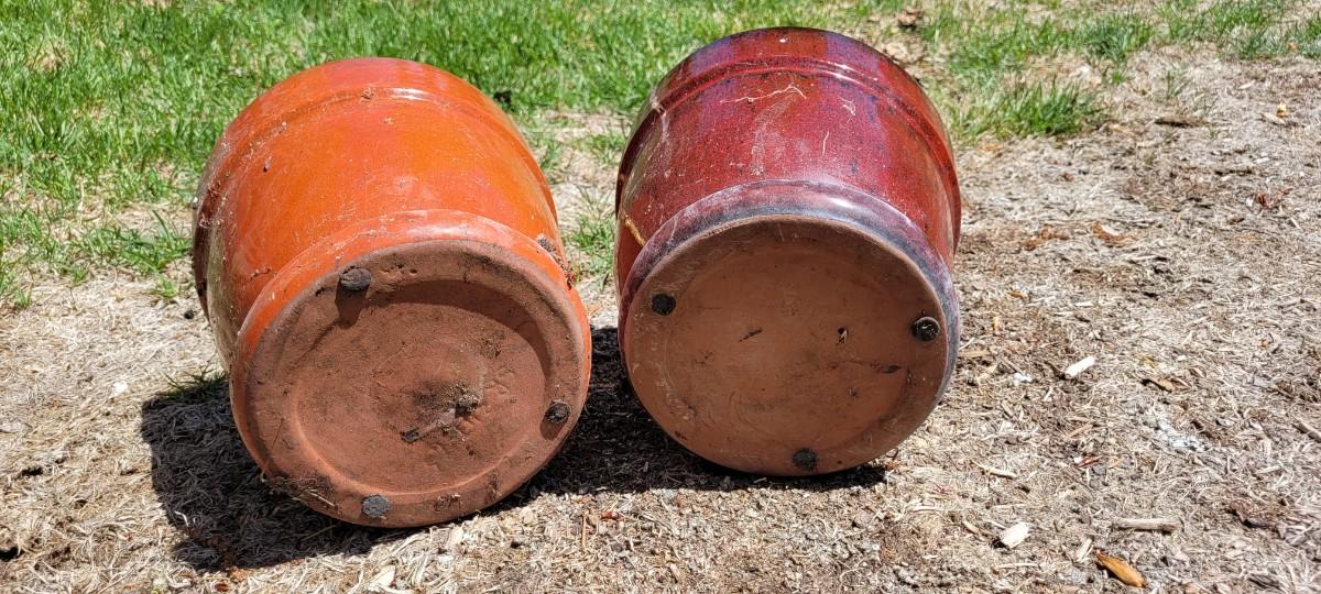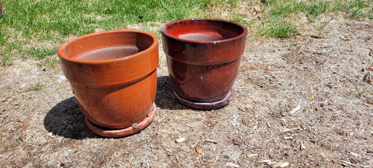 Lot 74: (2) Colorful Ceramic Flower Pots Medium Sized