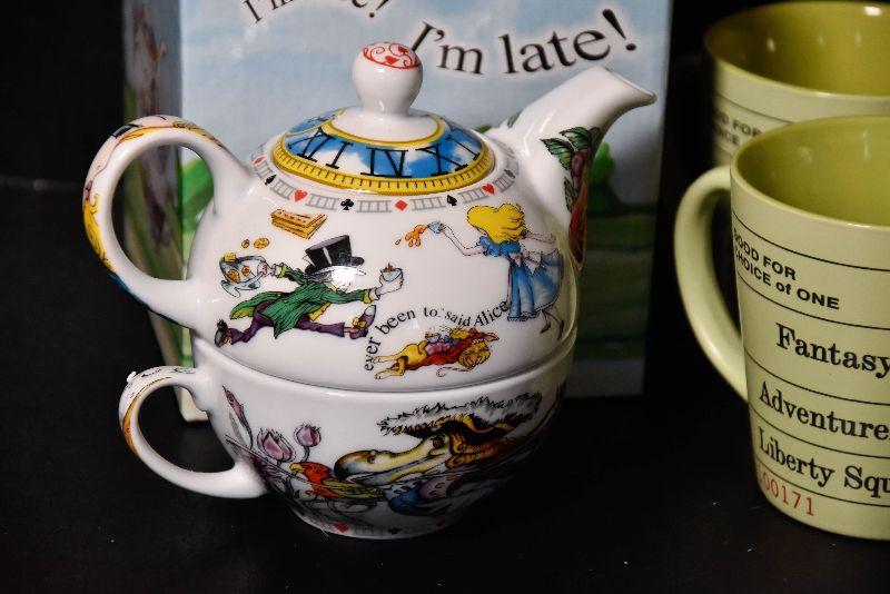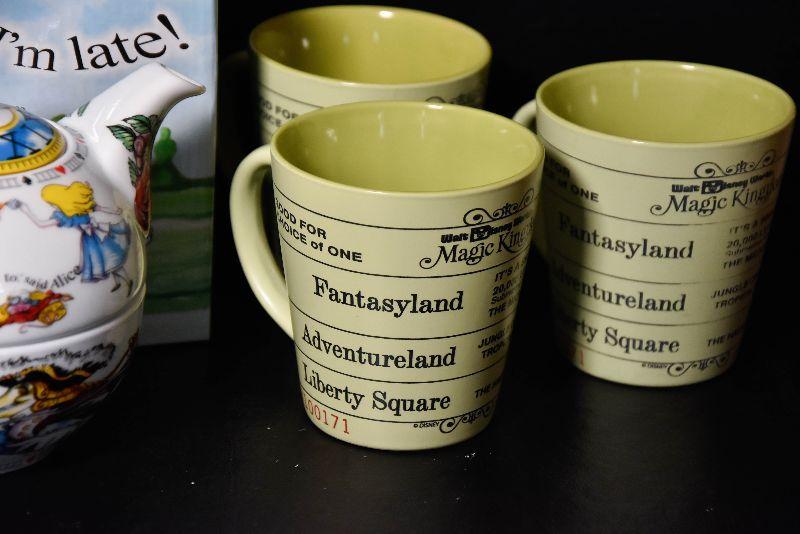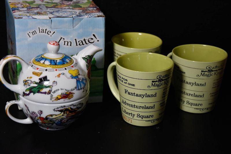 Lot 74: Alice in Wonderland Teapot Plus Disney Mugs