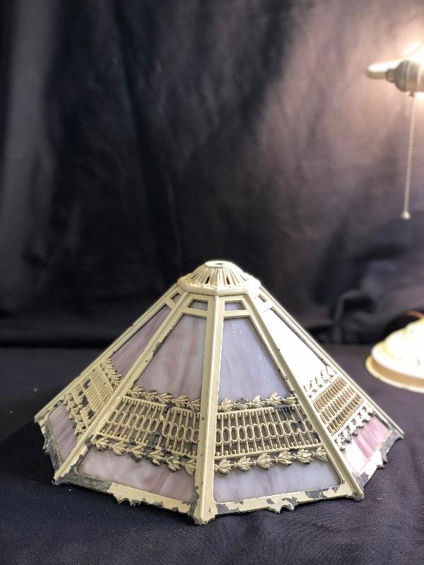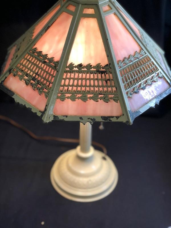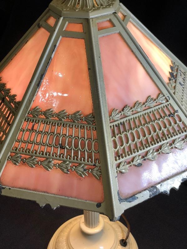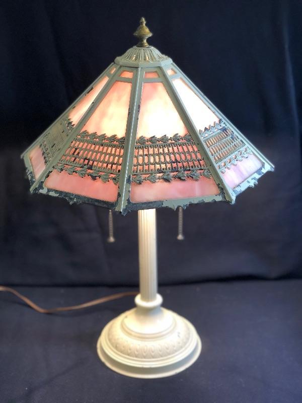 Lot 74 - Antique Bradley & Hubbard Slag Glass Lamp