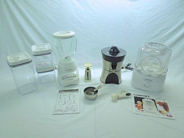 Hamilton Beach blender; Juiceman juicer; Cuisinart Ice Cream Maker; set of 4 metal measuring cups; measuring spoons; 4 plastic canister with sealing lids (one seal loose); weight watchers kitchen scale. All applances like new, work and have manuals.