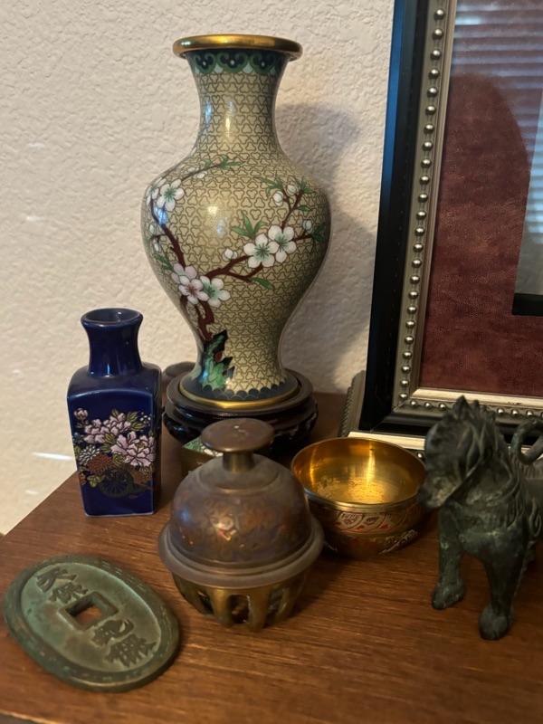 Lot 74 - Bronze Buddha, Vase, Bronze Lion Figures, more